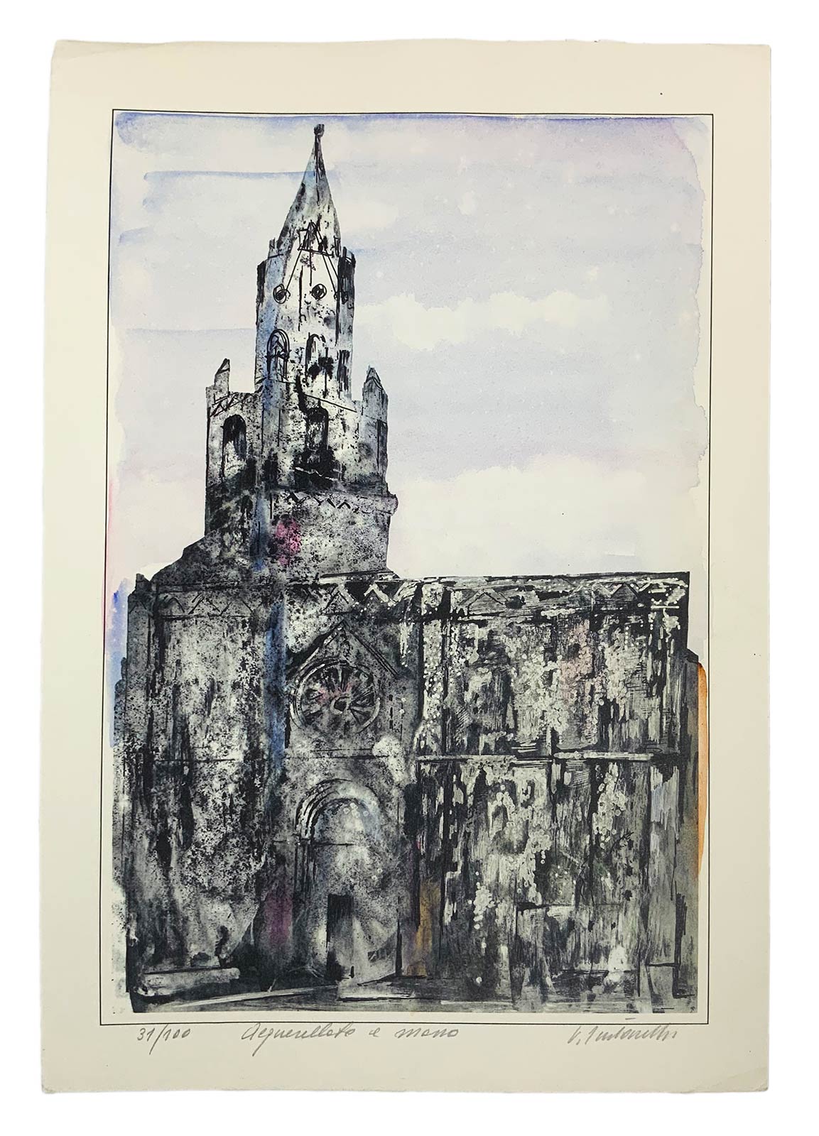 Incisione acquarellata a mano della Cattedrale Santa Maria Assunta in Roma di Benanzio Tentarelli. Cm 49x34.
