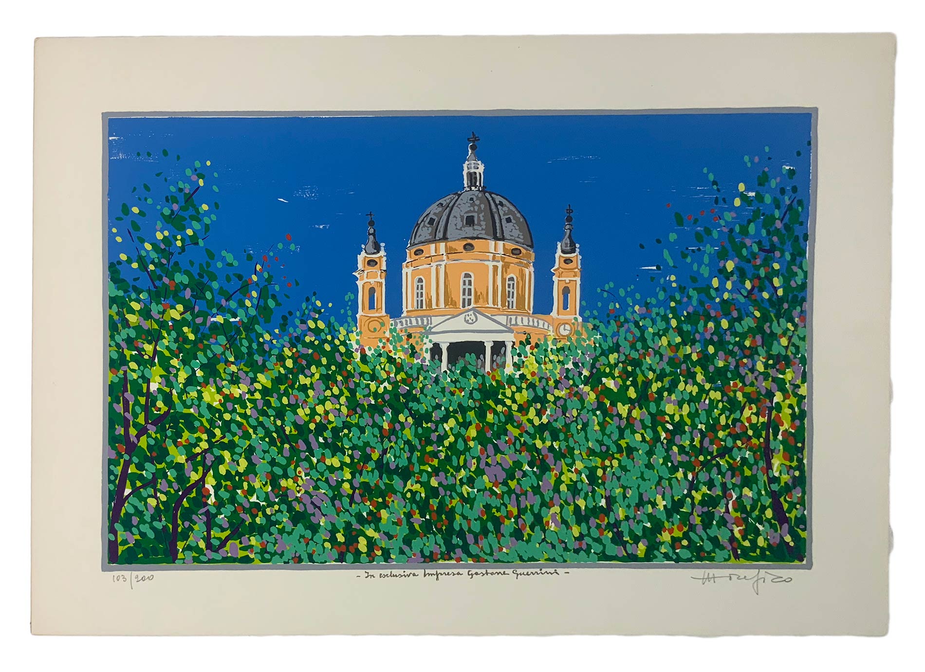 Lotto 384 | Serigrafia della Basilica di Superga di Ettore Fico (1917). A 15 colori,...