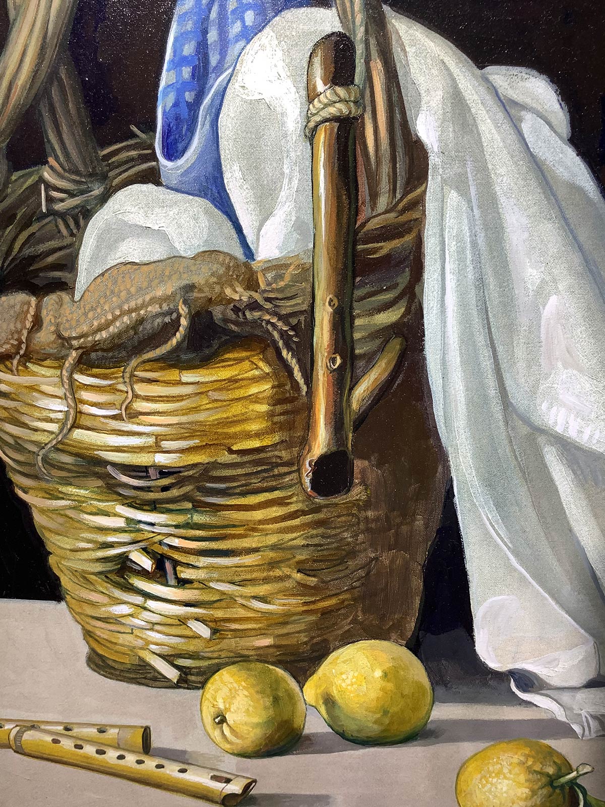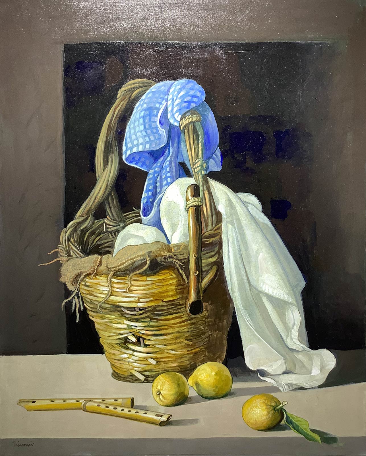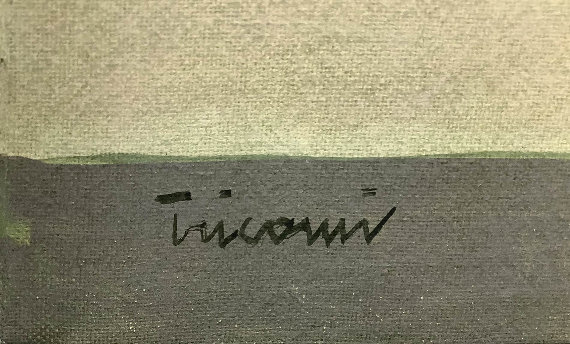 Saro Tricomi (Catania, 1937). La bottega di liutaio. 80x60, olio su tela....