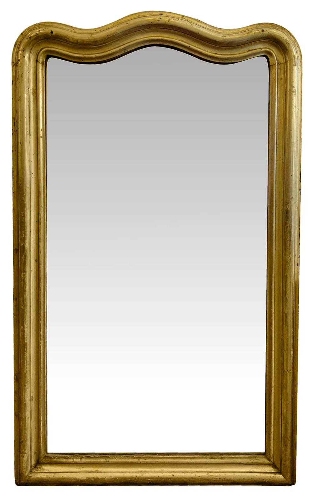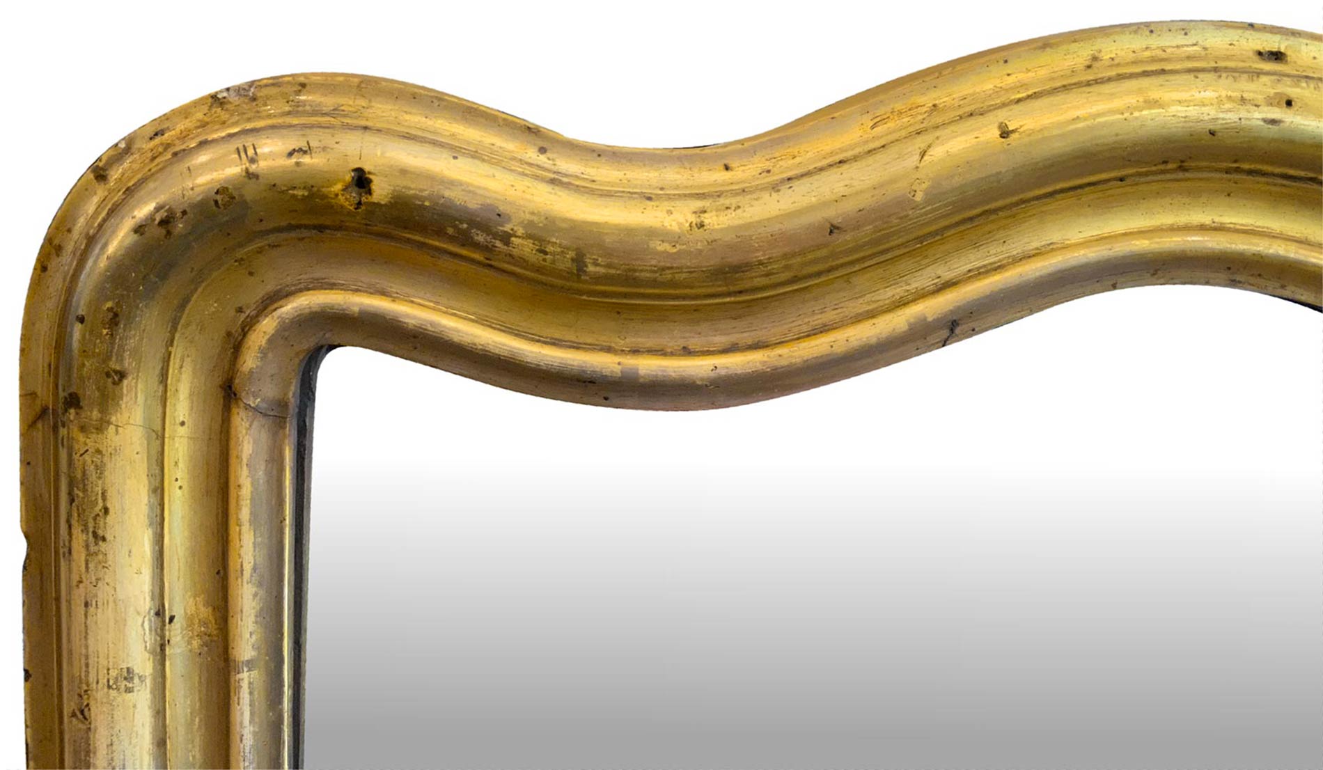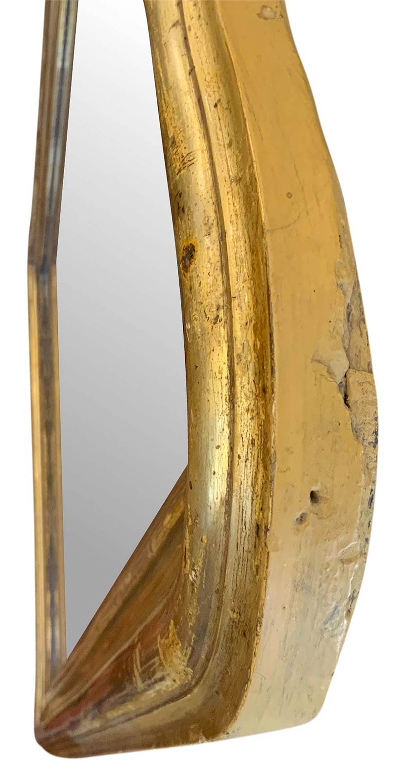 Specchiera in legno dorato a foglia meccata, Sicilia XVIII secolo. Specchio antico. H cm 112x70.
