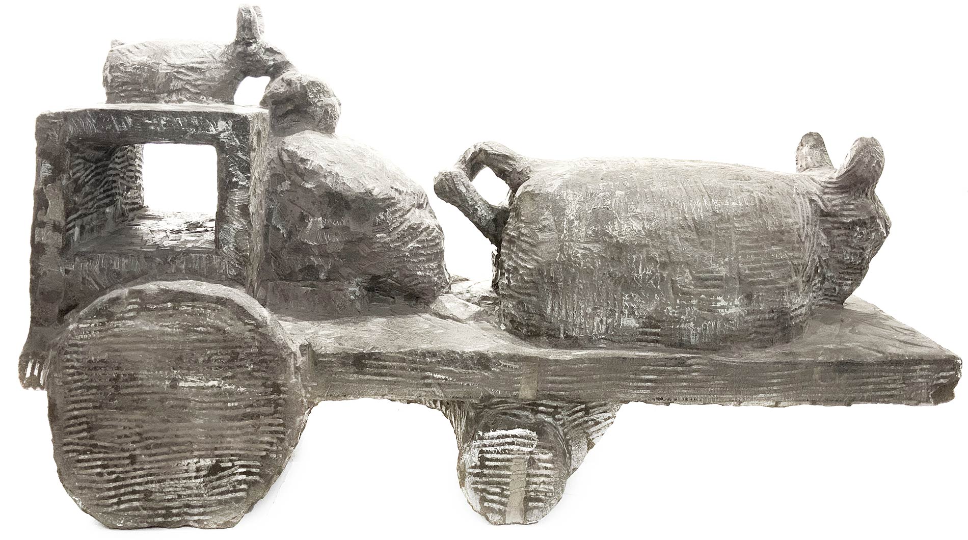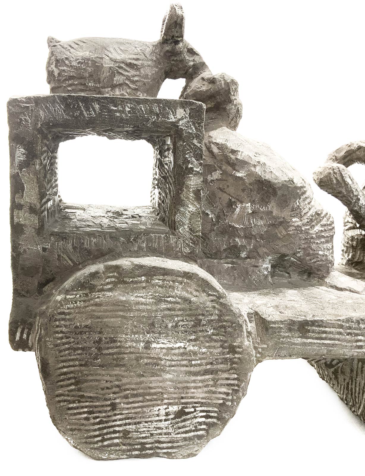 Scultura in pietra di Girolamo Ciulla (Caltanissetta 1952) raffigurante carro...