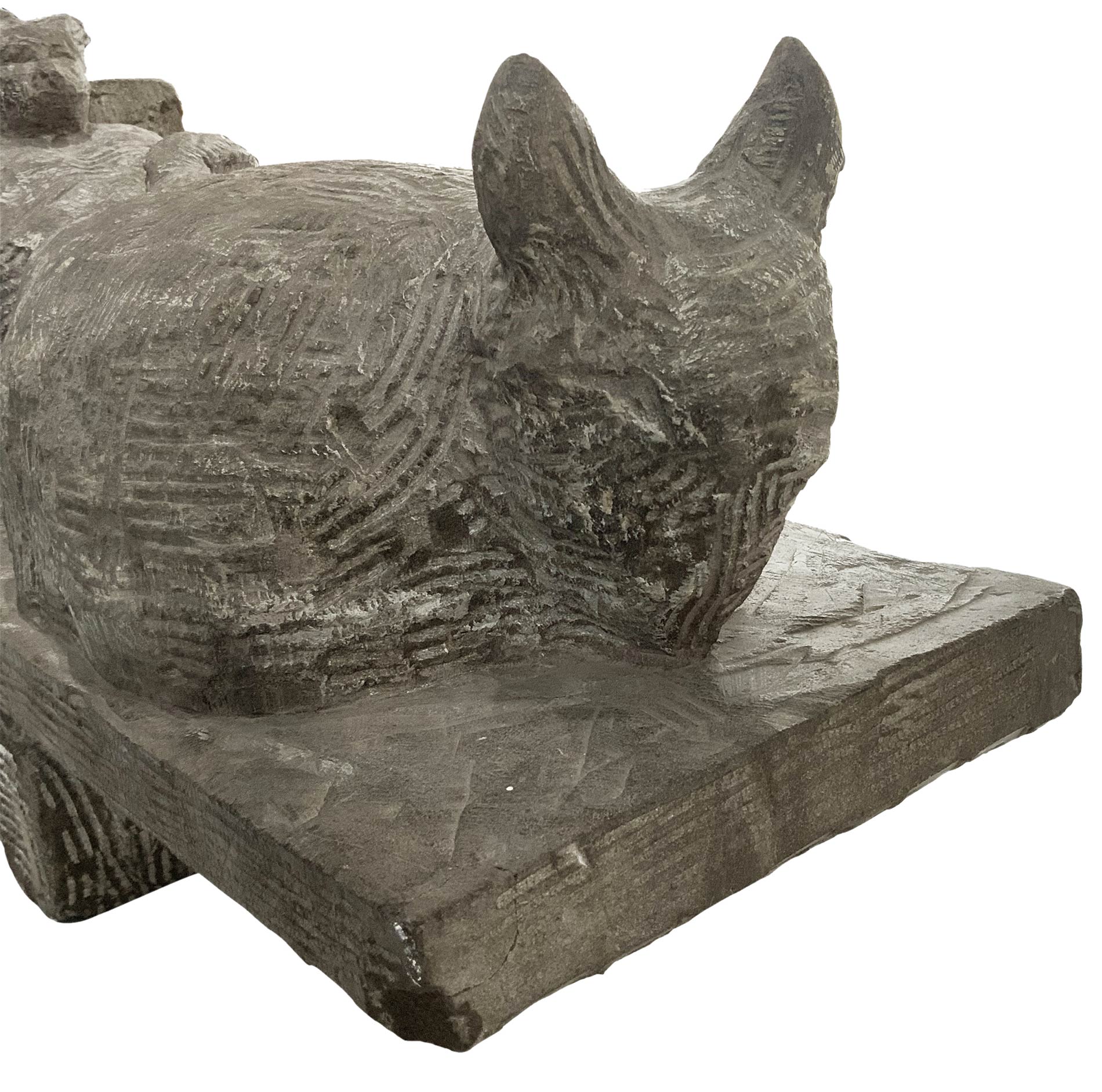 Scultura in pietra di Girolamo Ciulla (Caltanissetta 1952) raffigurante carro con 2 animali ed un uomo. Firmata. H cm 44x73x22