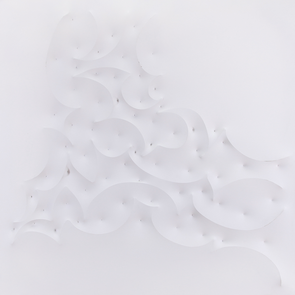 GIUSEPPE AMADIO Todi 19/05/1944 ACONA tela estroflessa bianca cm. 98,5x98,5, firma e titolo al retro, dichiarazione d'autenticità dell'artista su foto, opera priva di cornice.