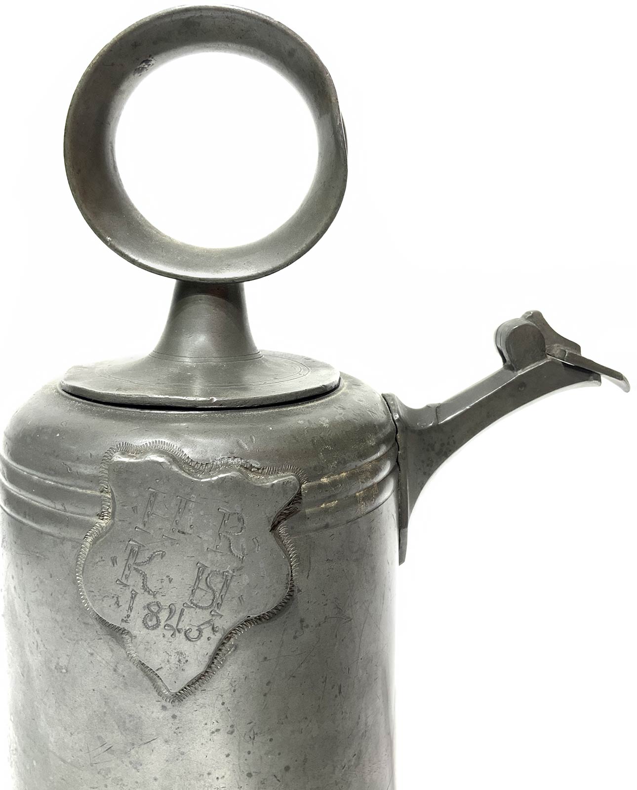 Lotto 415 | Versatoio in peltro, datato 1846. H cm 27x13