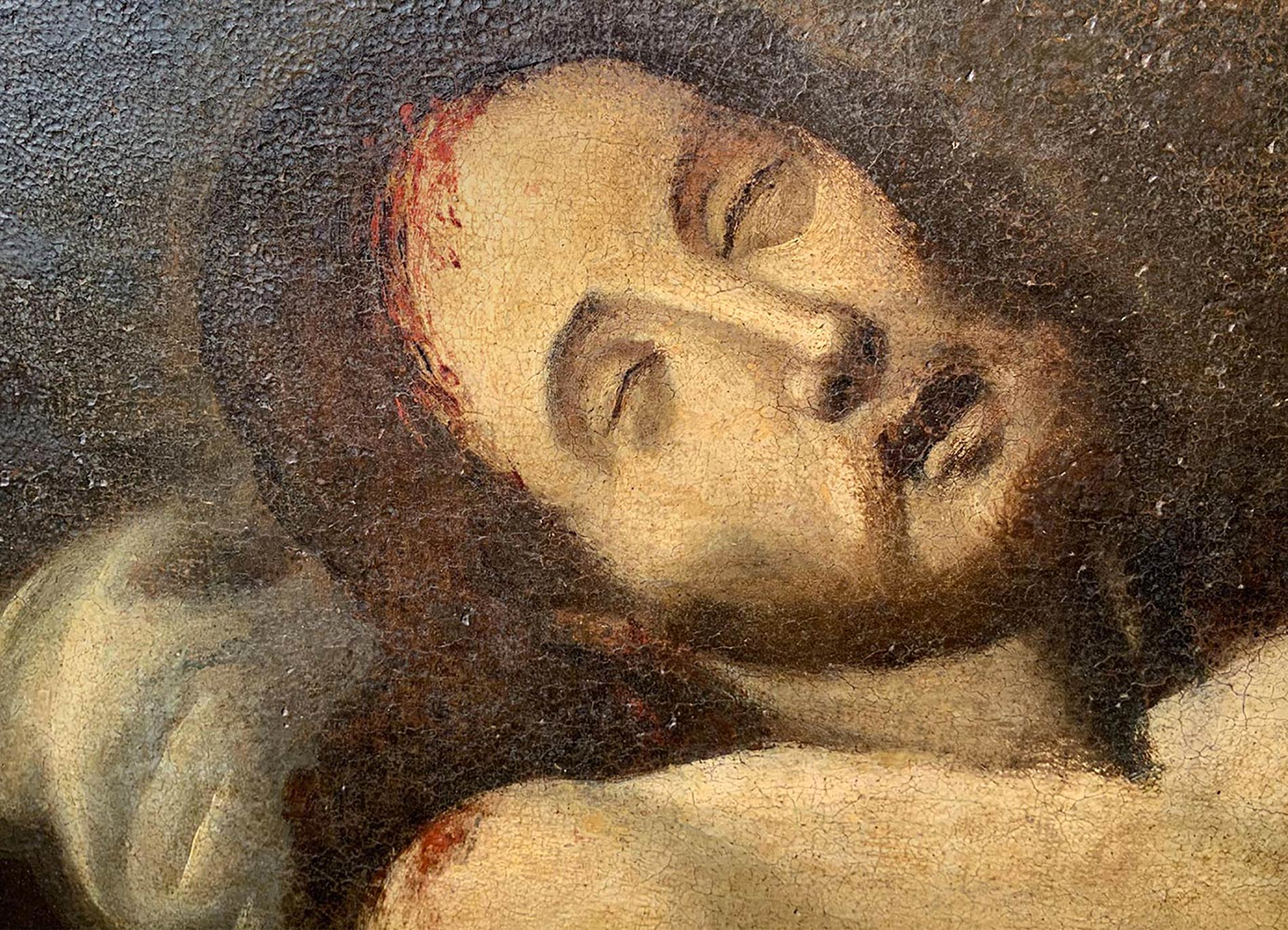 Lotto 445 | Dipinto ad olio su tela raffigurante Compianto del Cristo. 181x126, pittore...