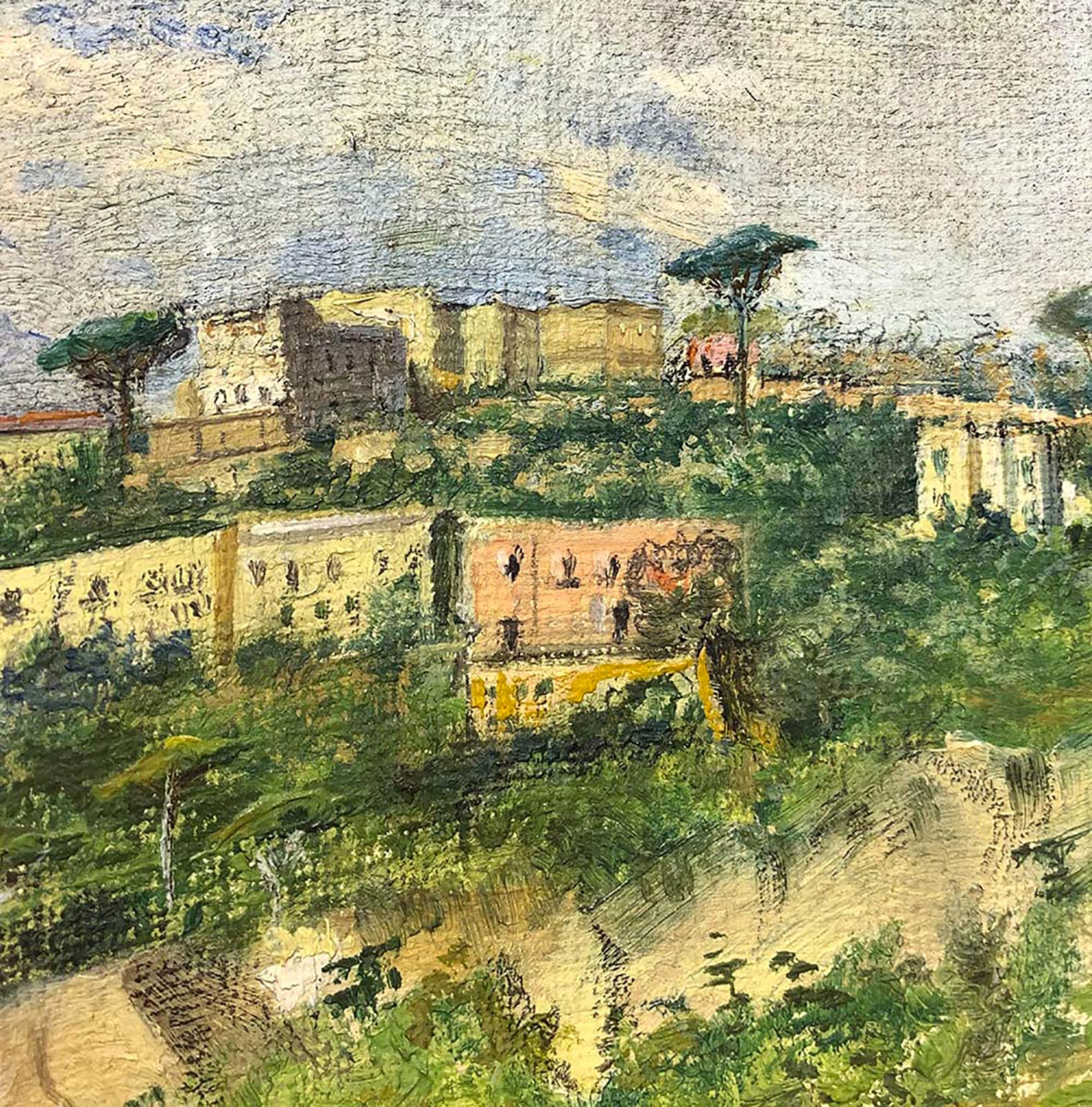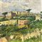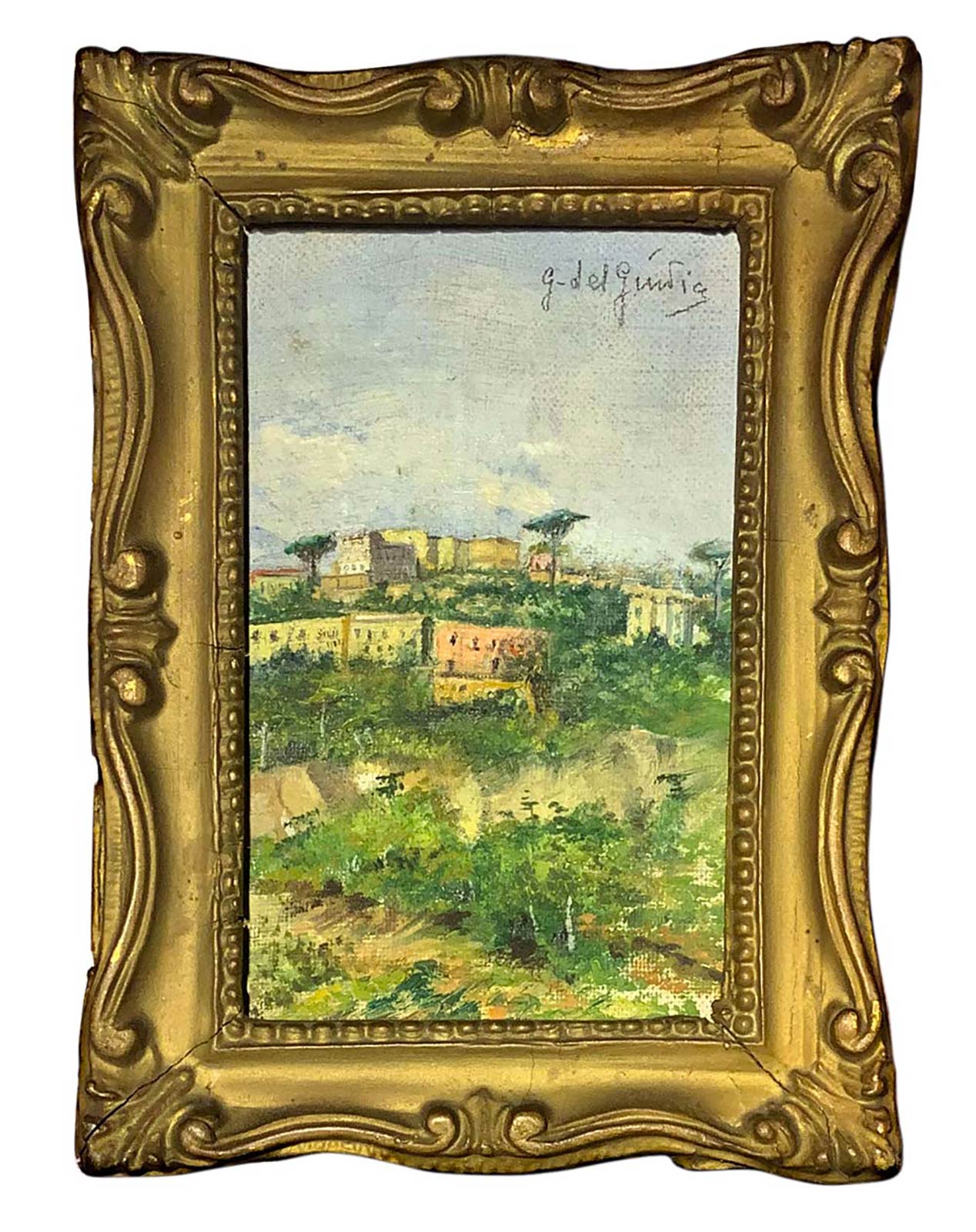 Dipinto raffigurante paesaggio con case di Elvira Del Giudice. 14x9, olio su...