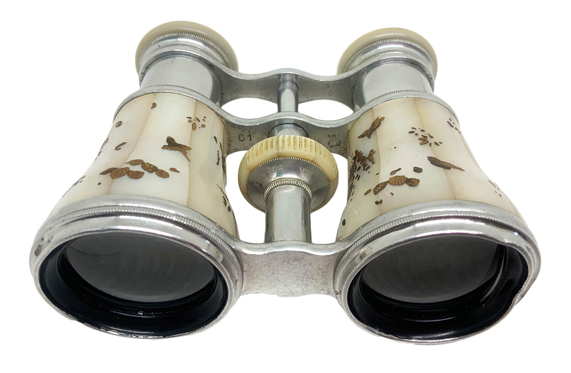 Binocolo da teatro in madreperla. Inizi XX secolo. Cm 8x10.