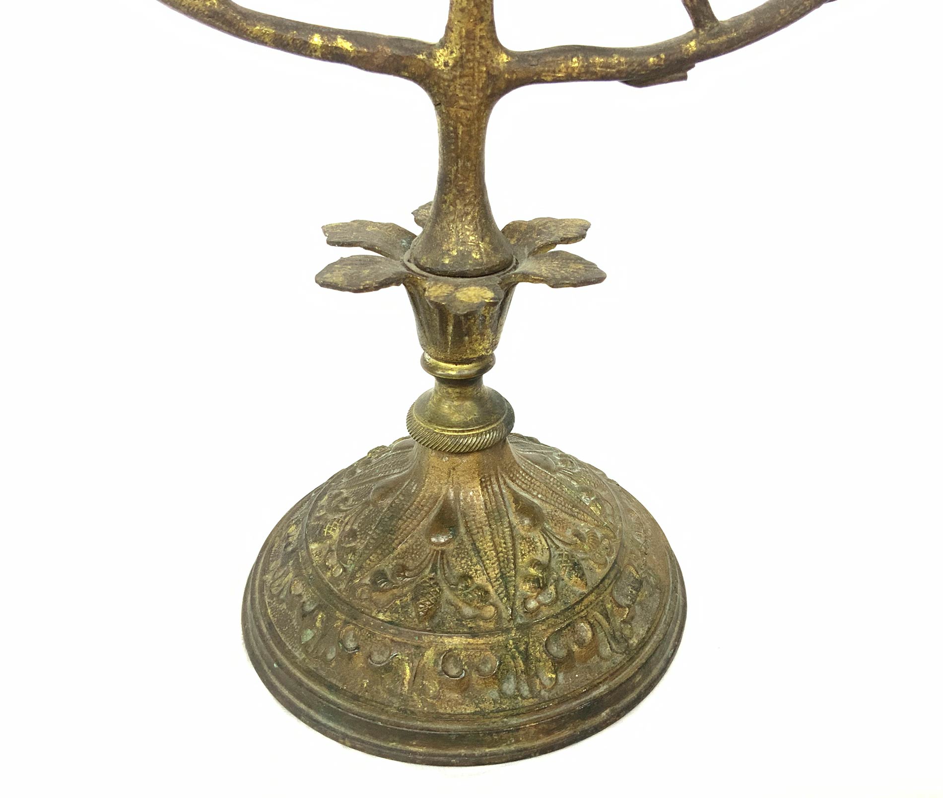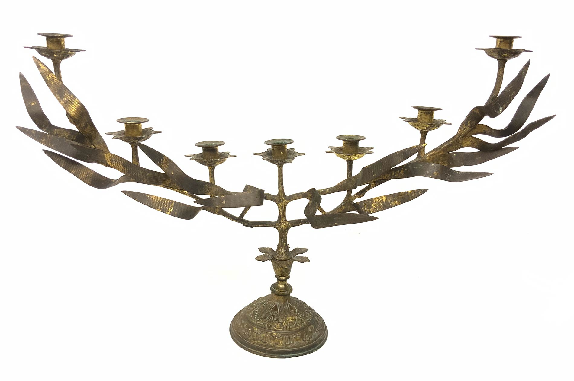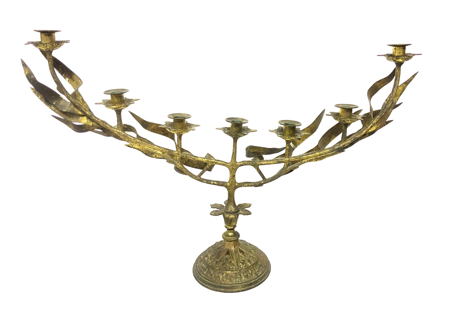 Lotto 478 | Candelabro in ottone dorato a sette luci, decorazione a foglie. H cm 45