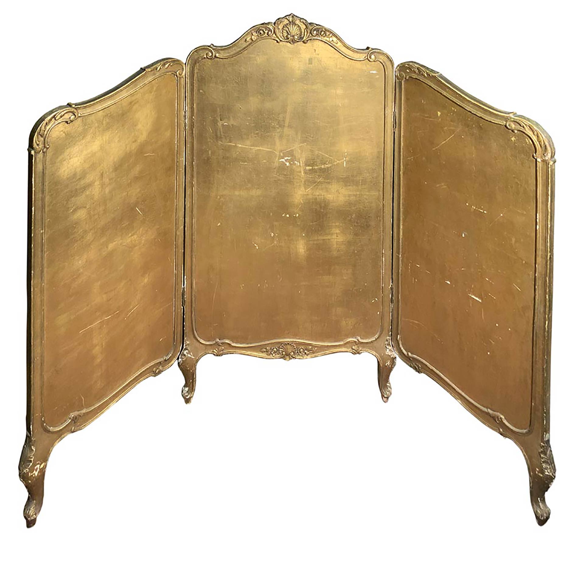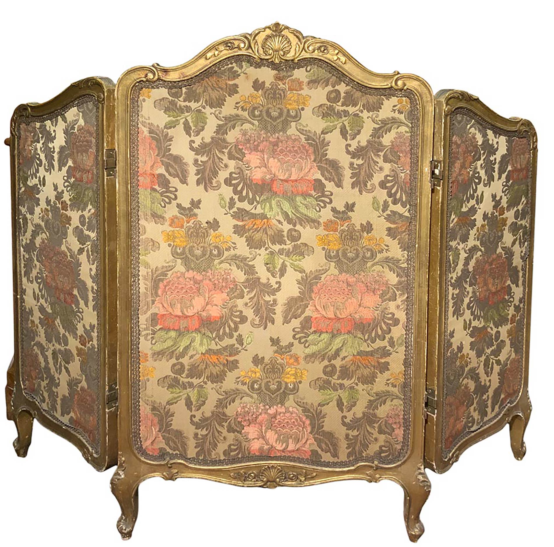 Paravento in legno a tre ante, fine XIX secolo. Tapezzeria floreale. H cm...