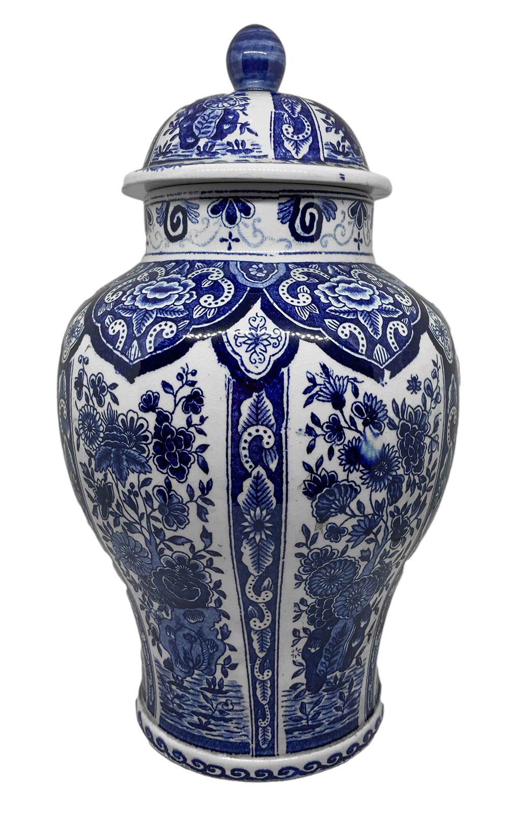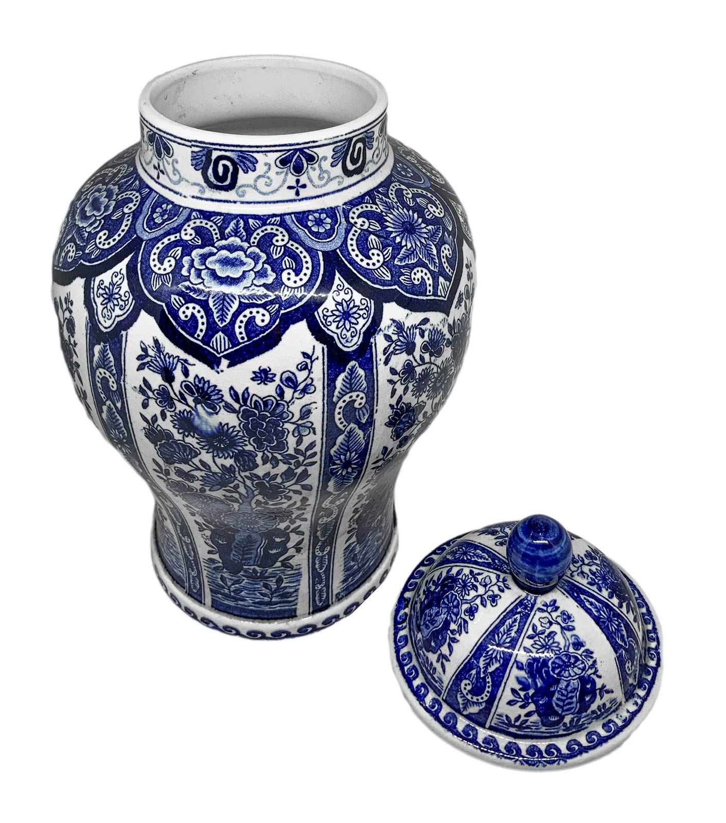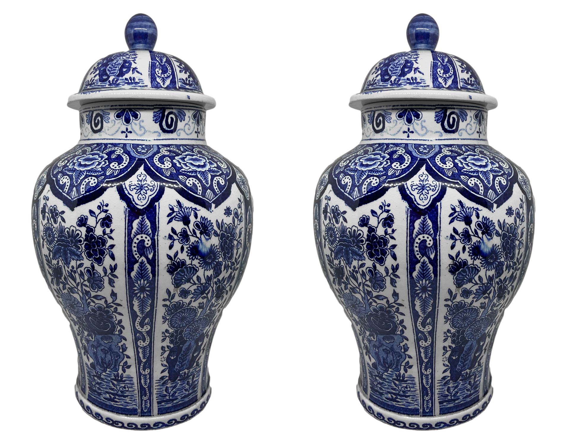 Coppia di vasi in maiolica a potiche Delft, XX secolo. Cm 30