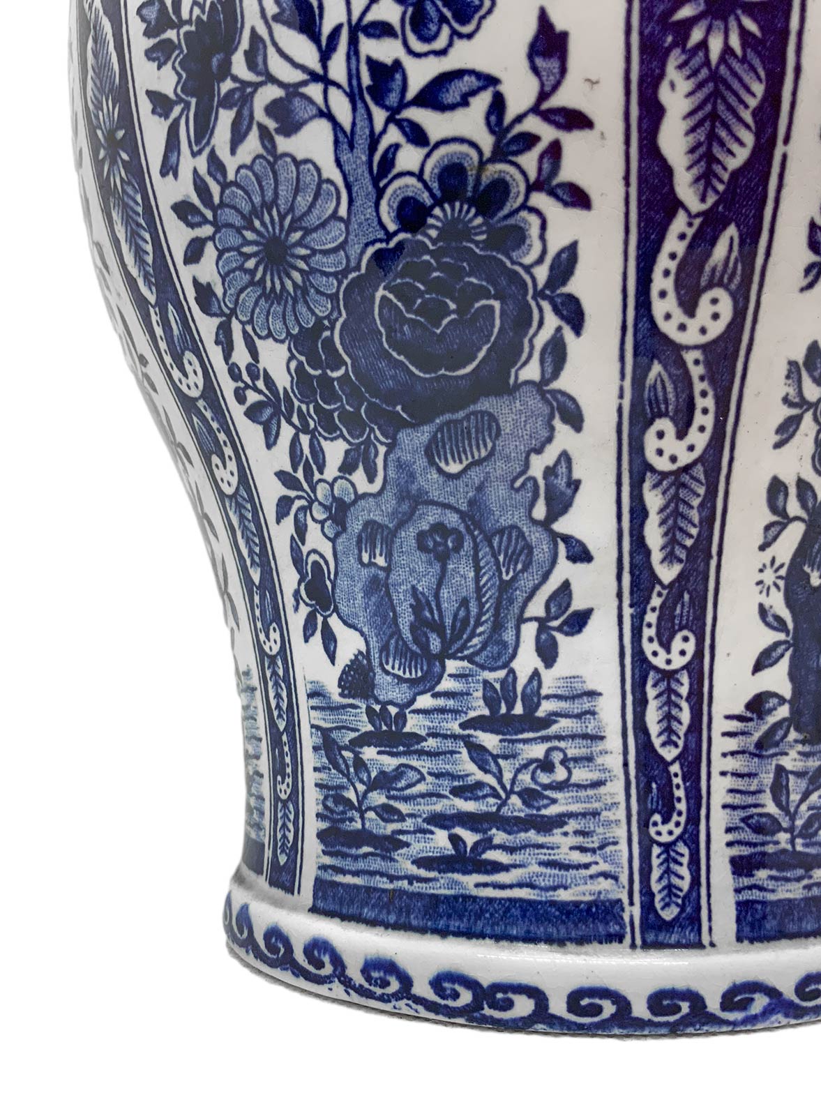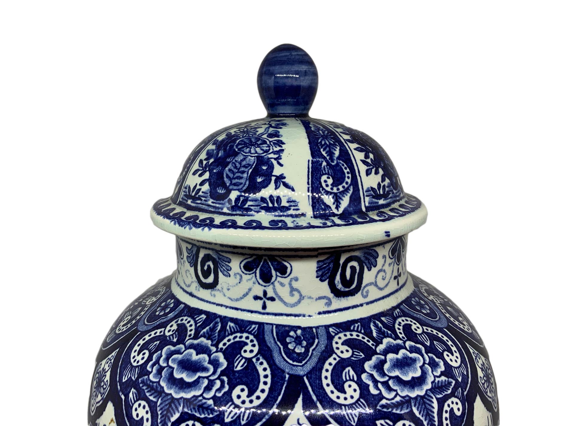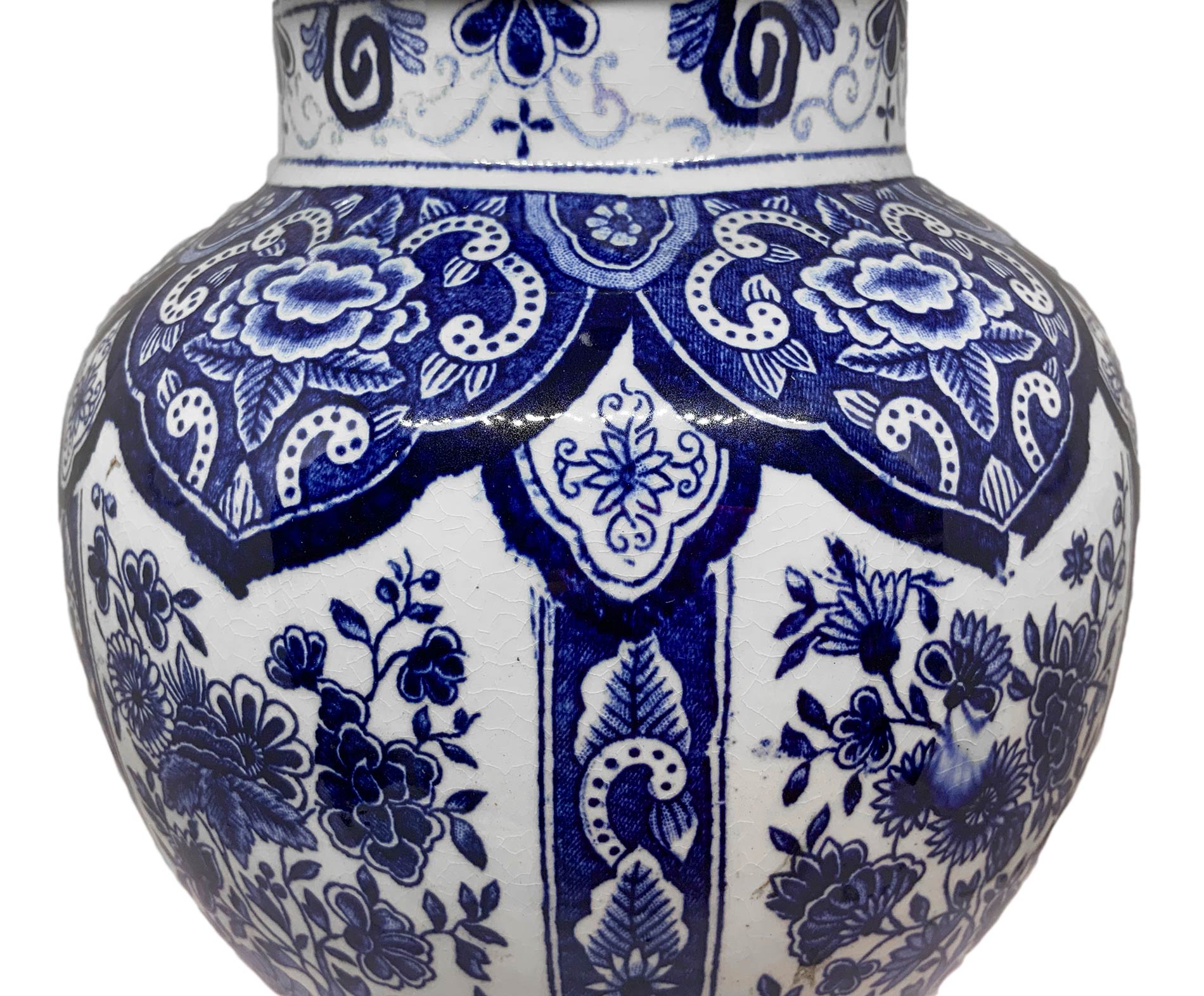 Coppia di vasi in maiolica a potiche Delft, XX secolo. Cm 30