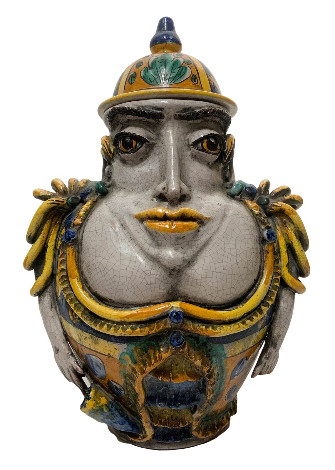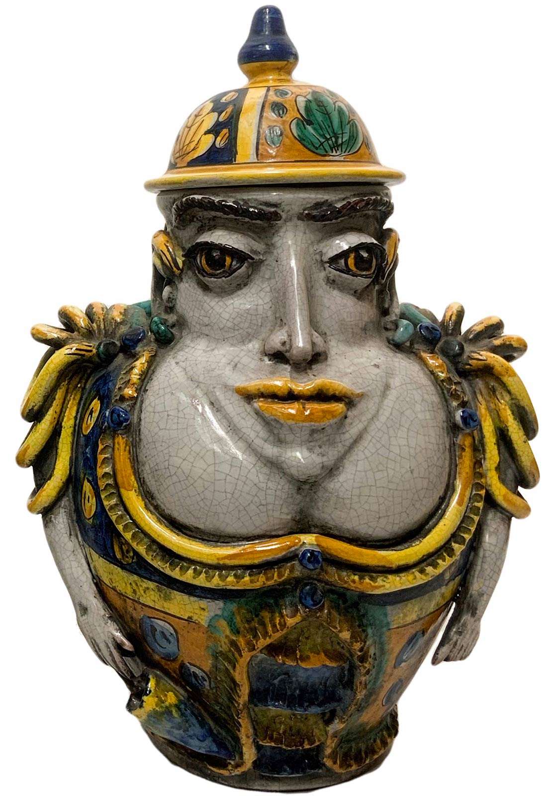 Poutiche in maiolica di Caltagirone, figura antropomorfa di donna policroma...