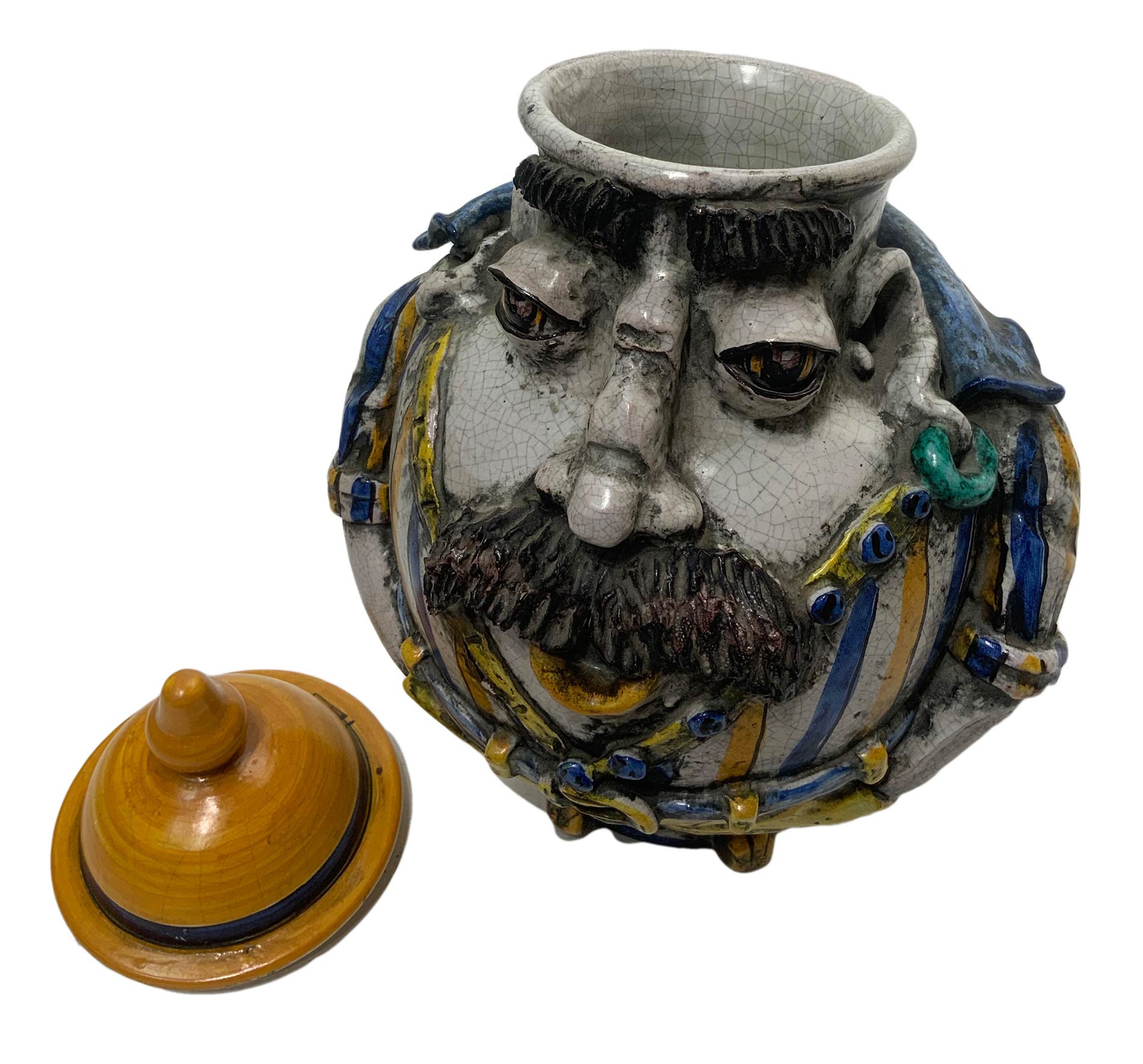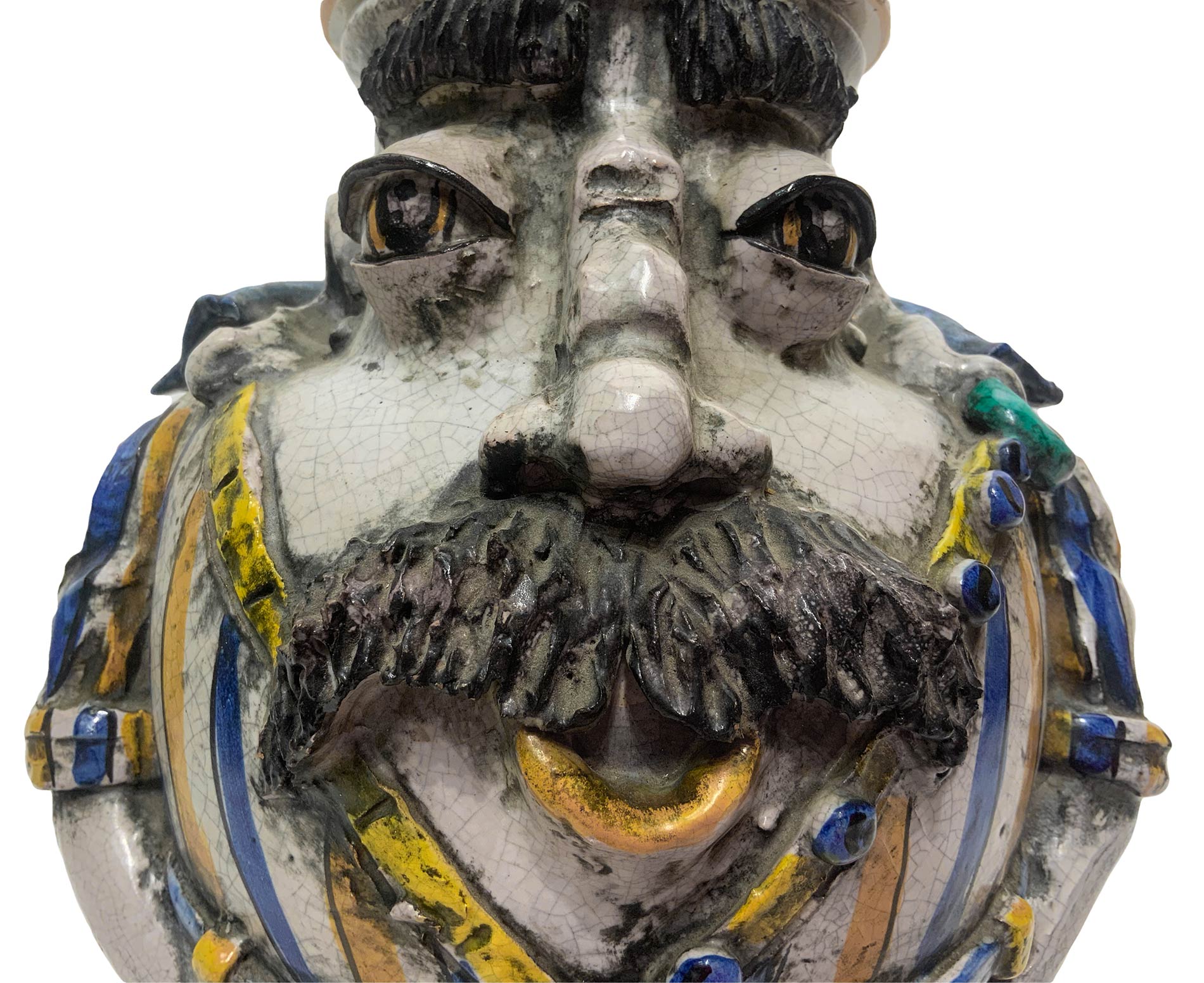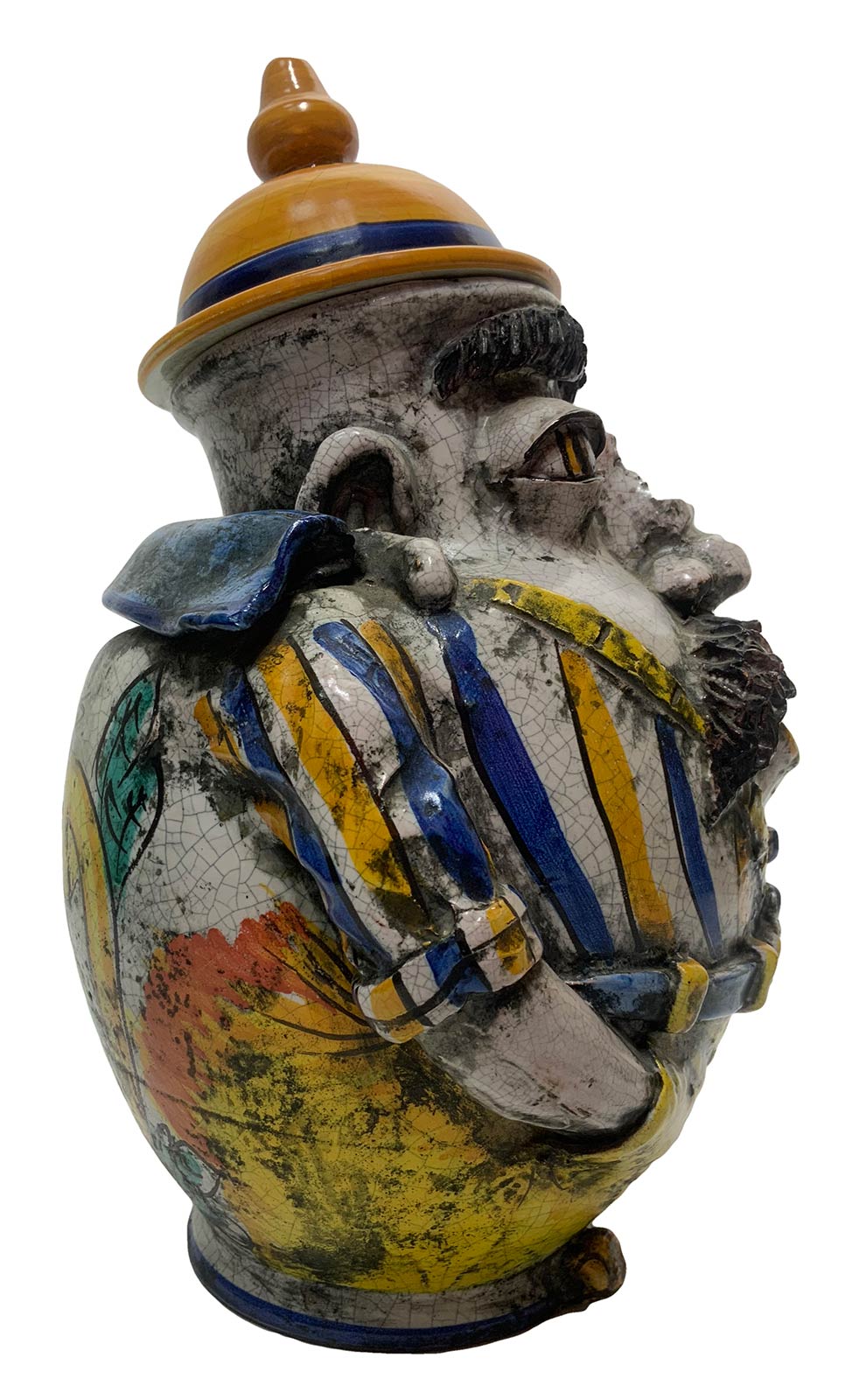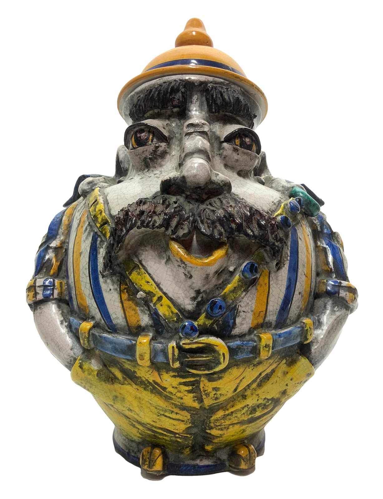 Poutiche in maiolica di Caltagirone. Figura antropomorfa di uomo policroma...