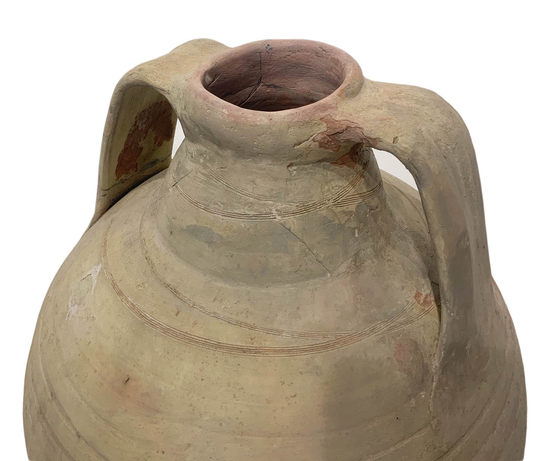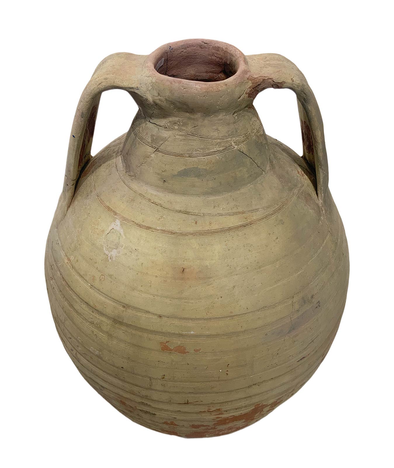Quartara in cotto siciliano panciuta con due manici. H cm 60, circonferenza cm 132.