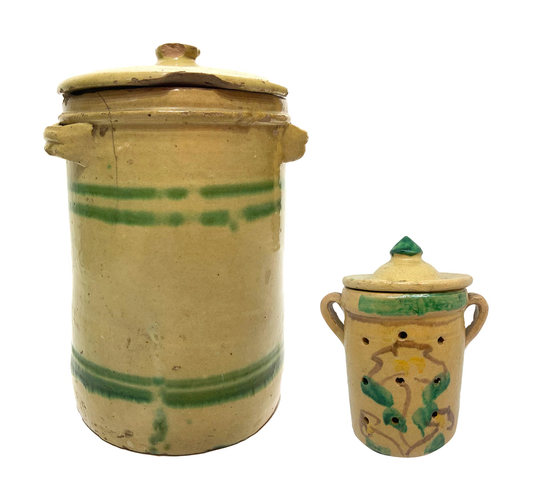 Lotto 501 | Porta olive e porta aglio in maiolica di Caltagirone. Cm 26 e cm 14.
