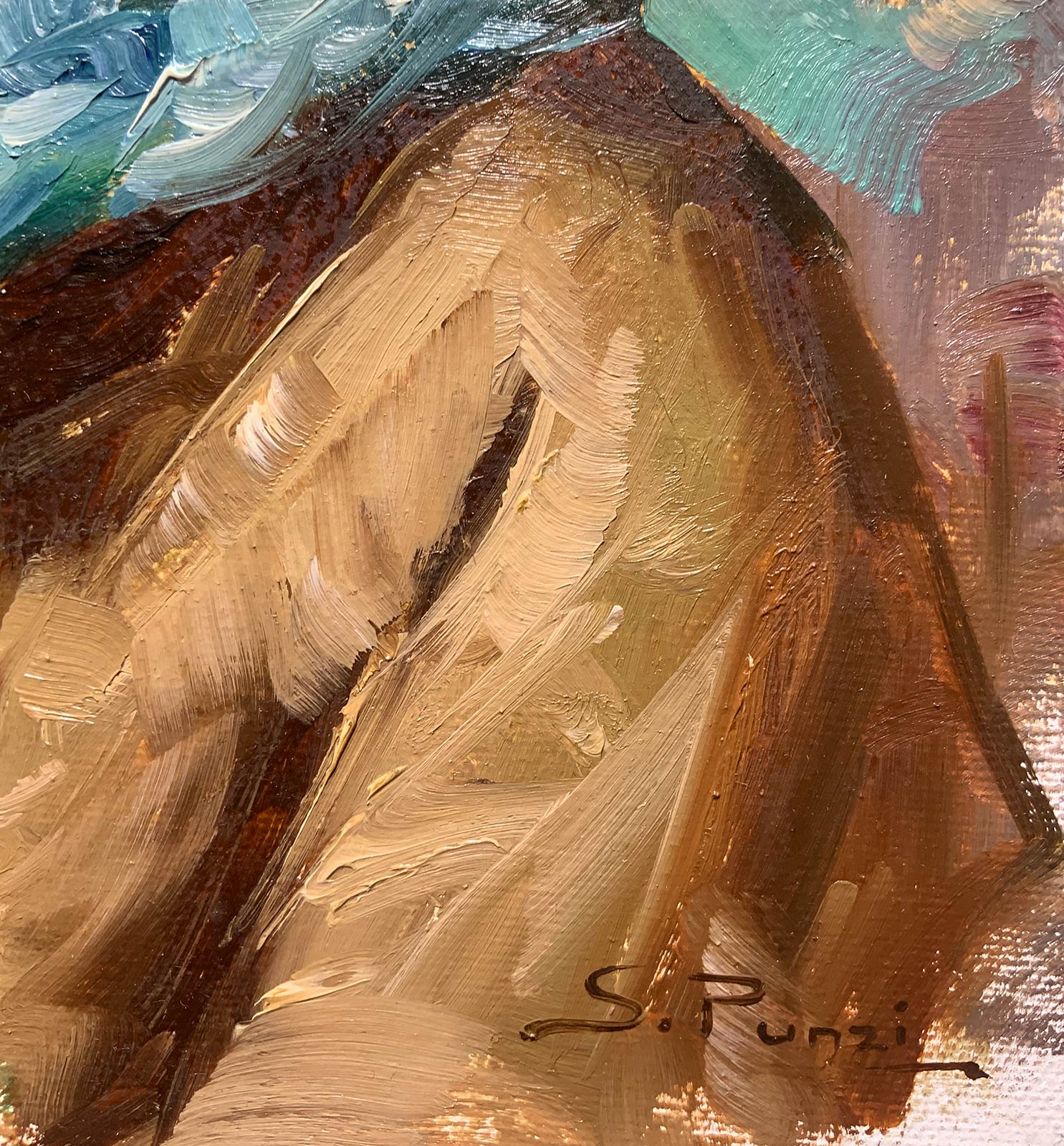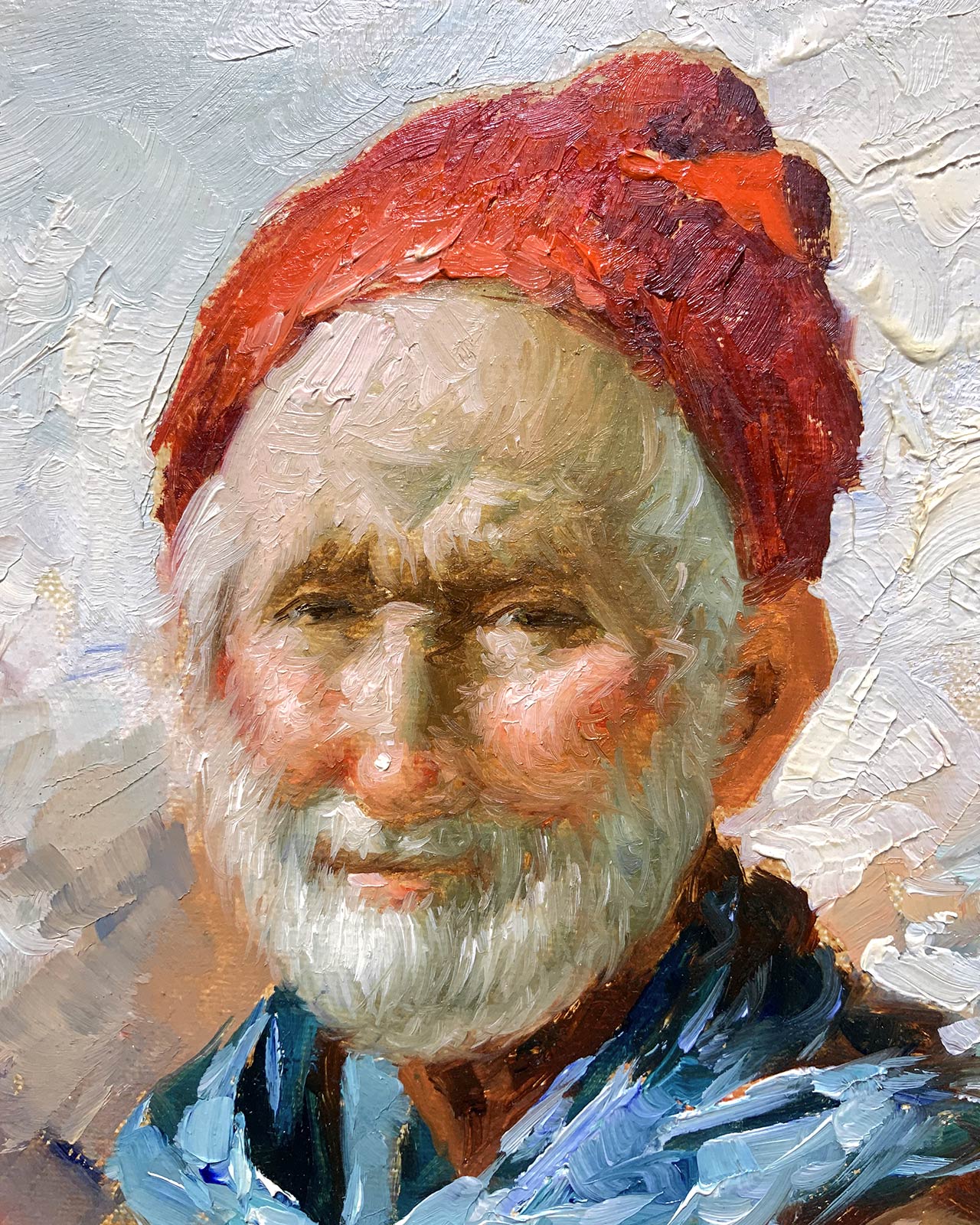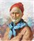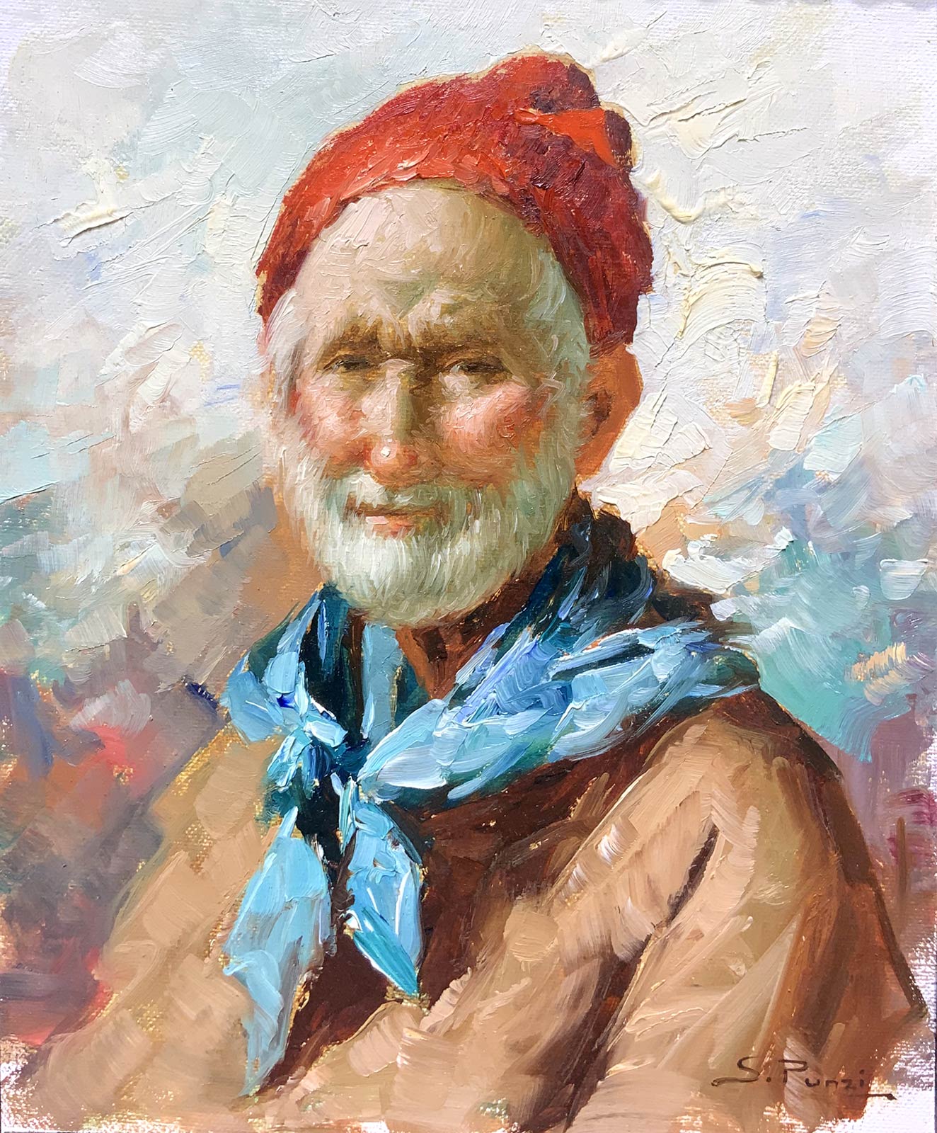 Lotto 527 | Dipinto ad olio su tela raffigurante uomo con cappuccio rosso di S. Punzi. Cm...