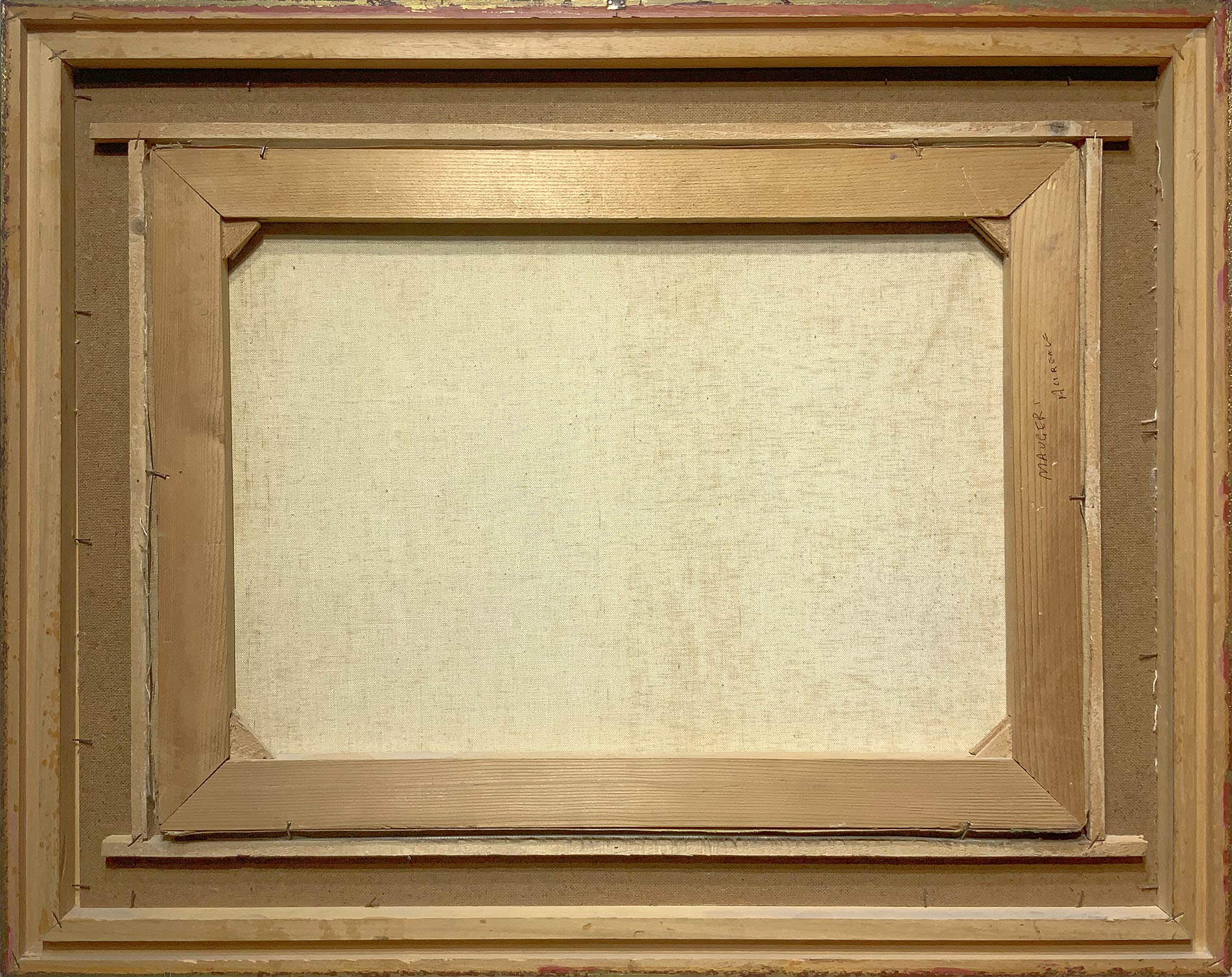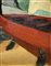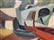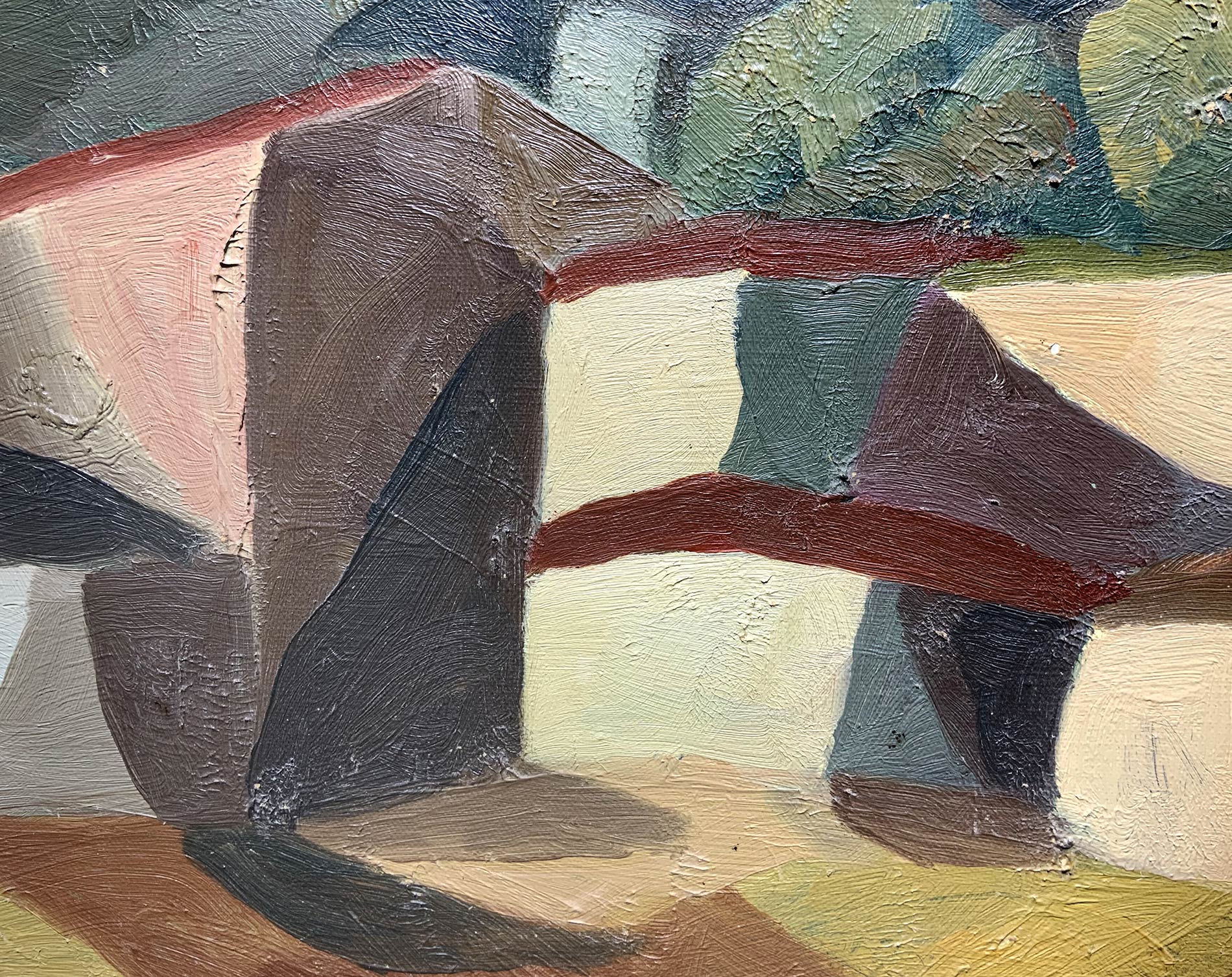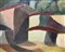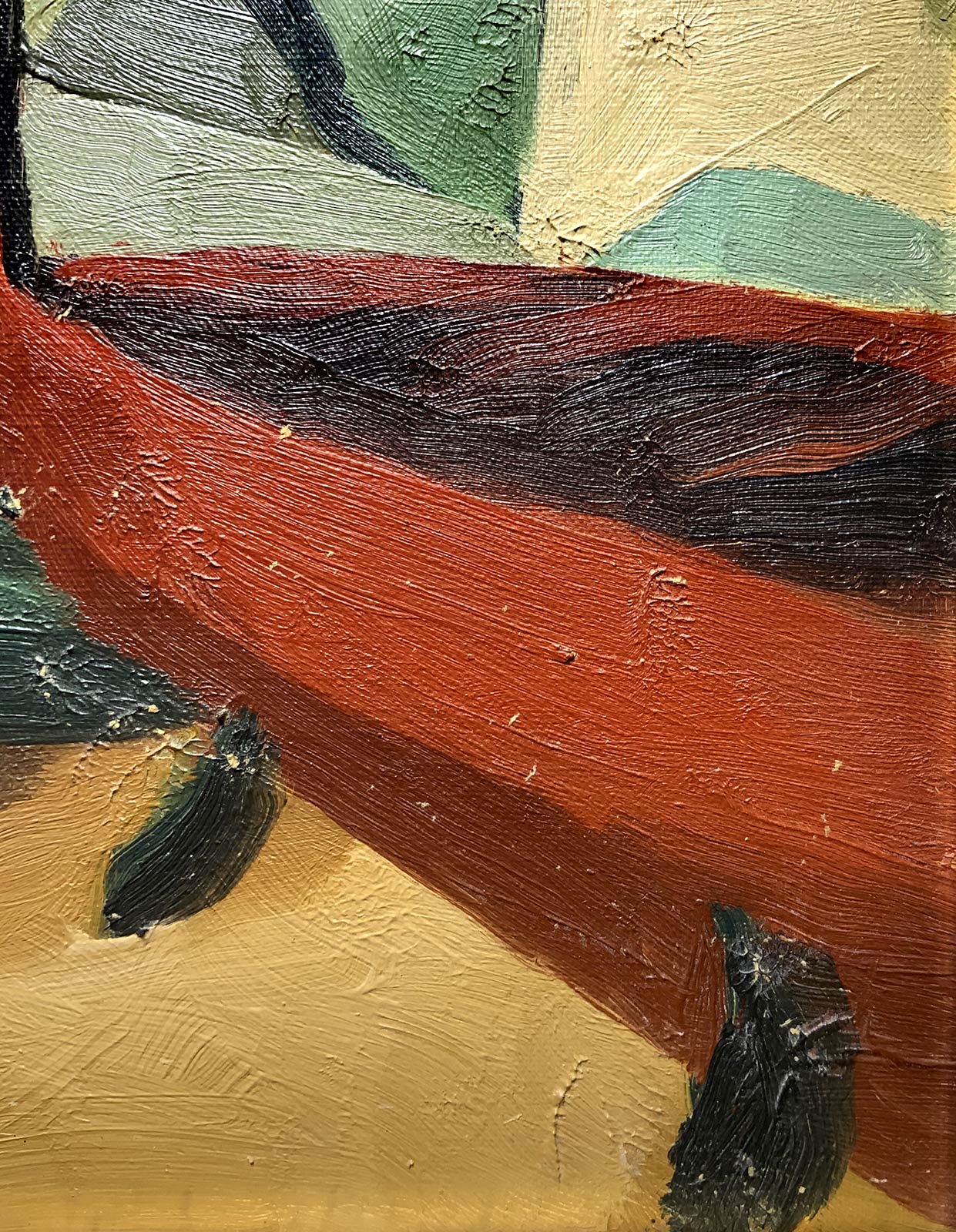 Dipinto ad olio su tela raffigurante barche a secco. Opera espressionistica degli anni '50. Cm 45x60.