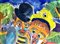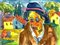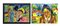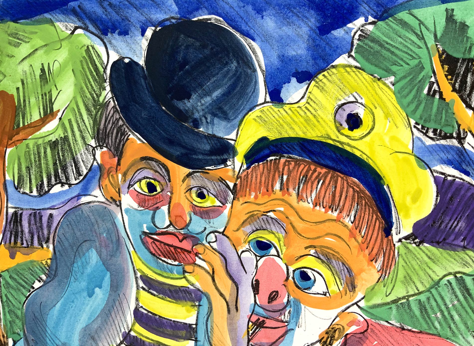 Coppia di disegni ad acquarello e tecnica mista su carta raffiguranti figure...