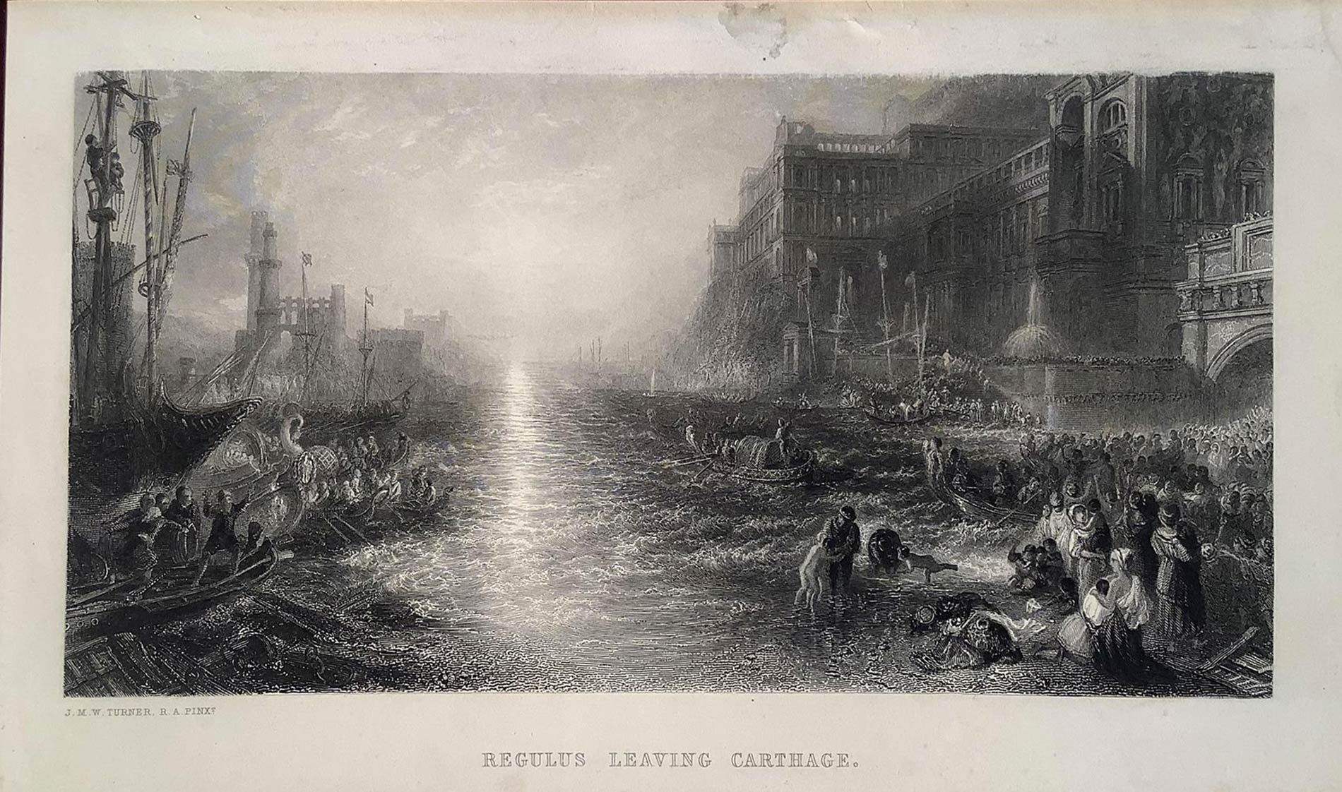 Lotto 545 | Incisione raffigurante R. A. Pinx Regulus Leaving Carthage, J.M.W. Turner. Cm...