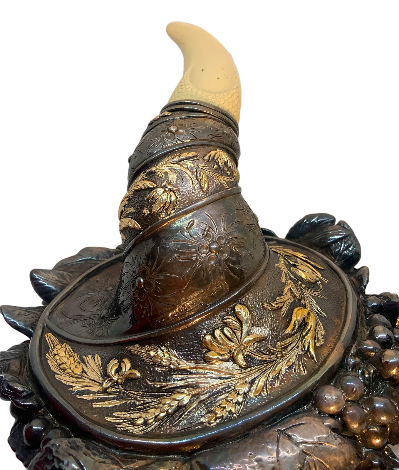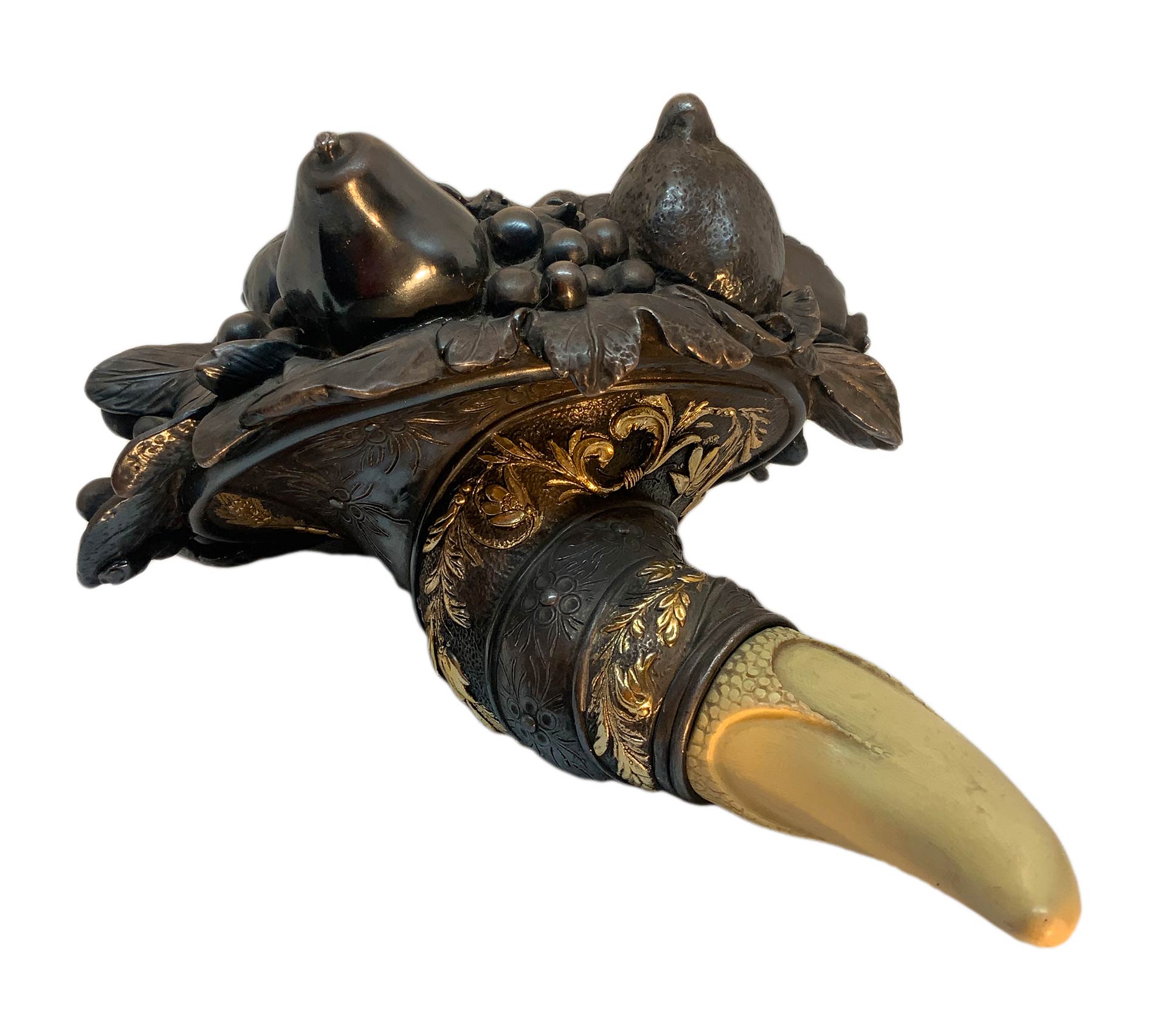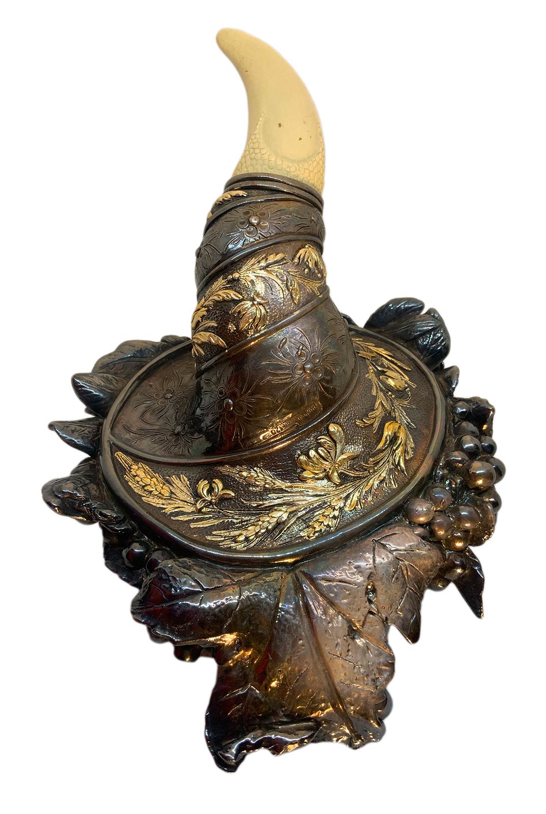 Cornucopia con punta in osso. Lunghezza cm 30. H cm 13.