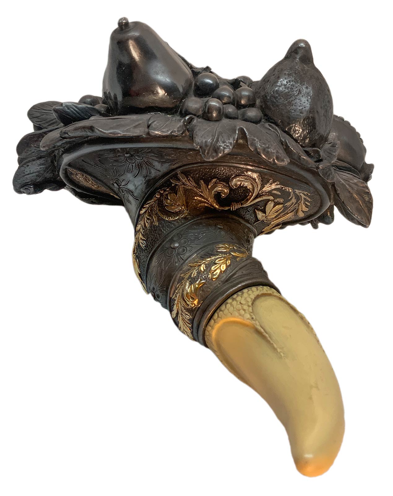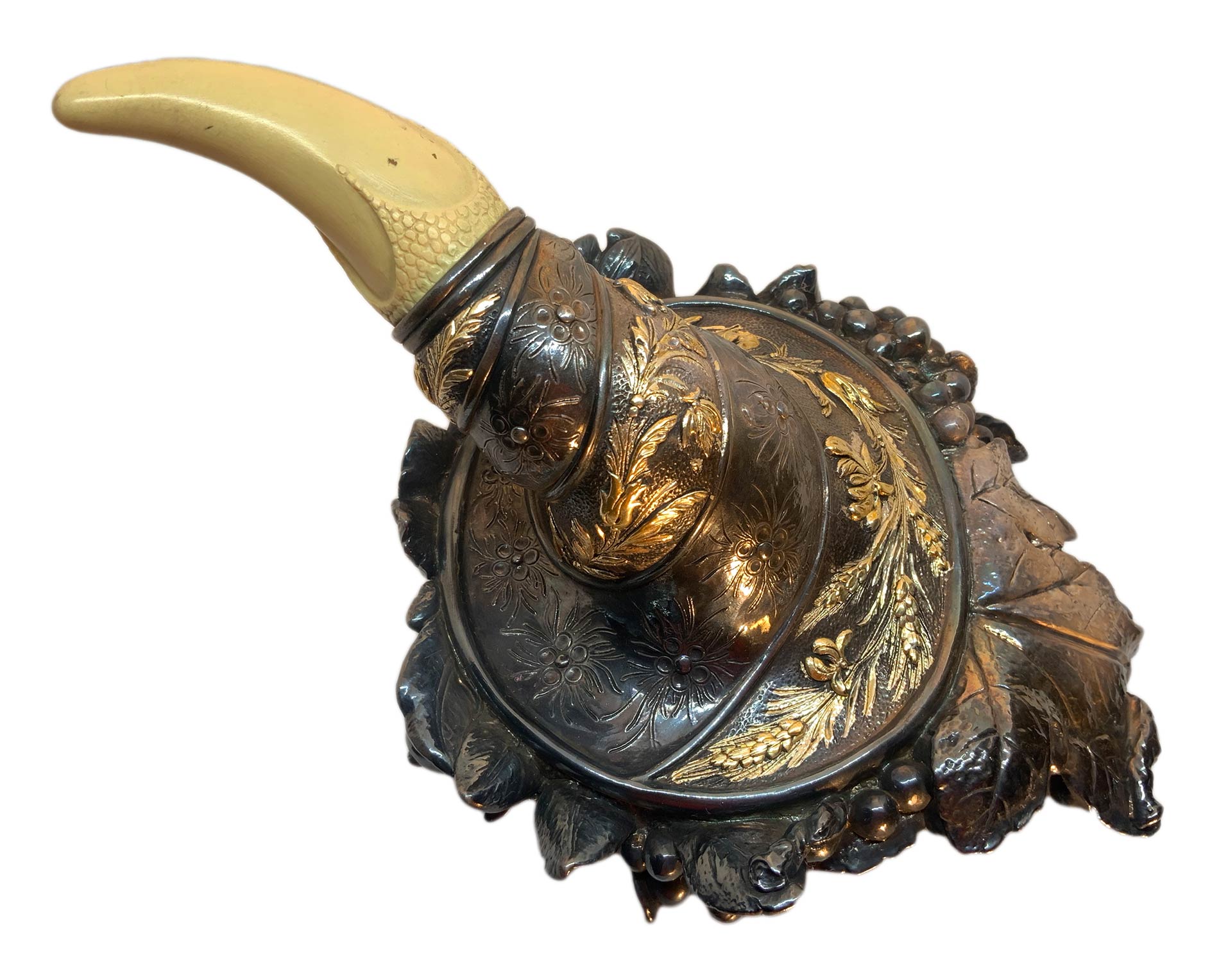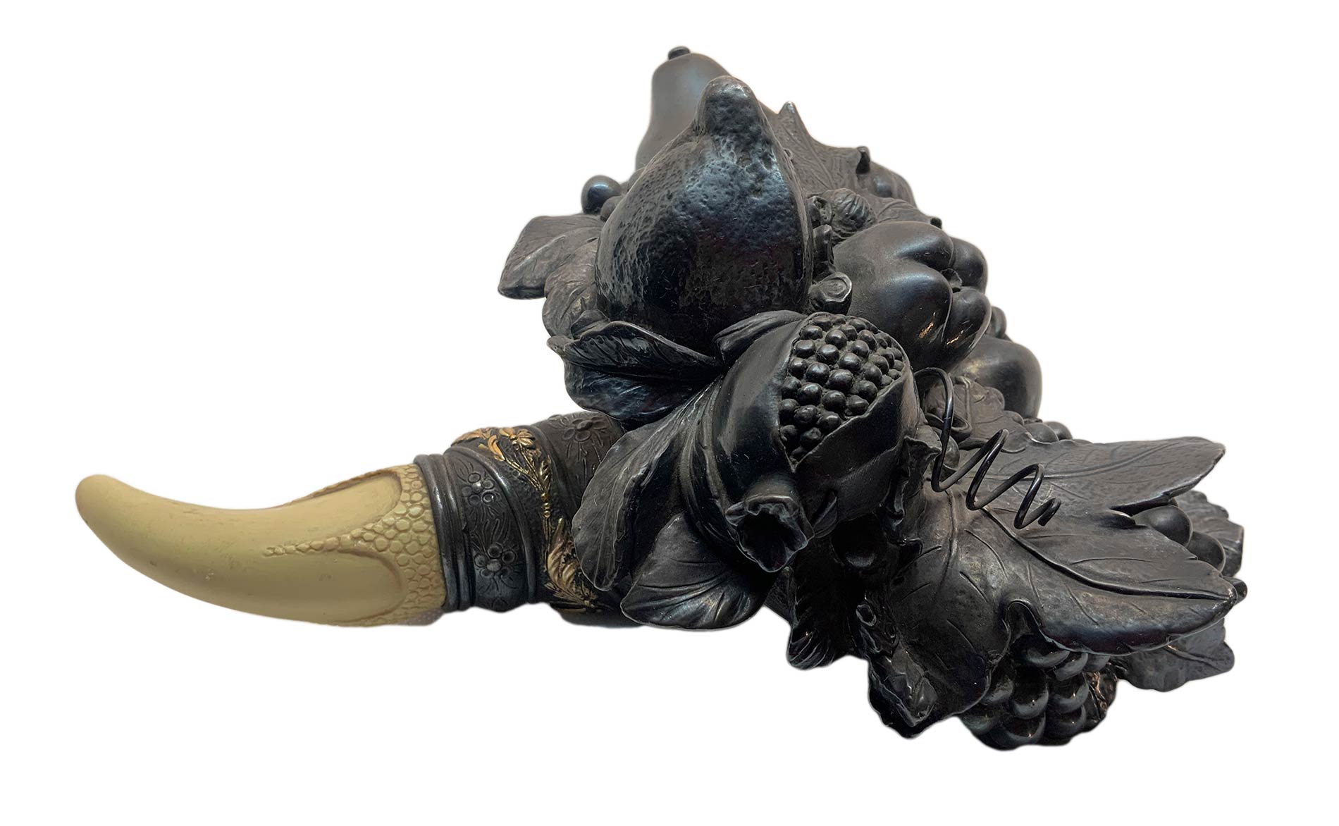 Cornucopia con punta in osso. Lunghezza cm 30. H cm 13.