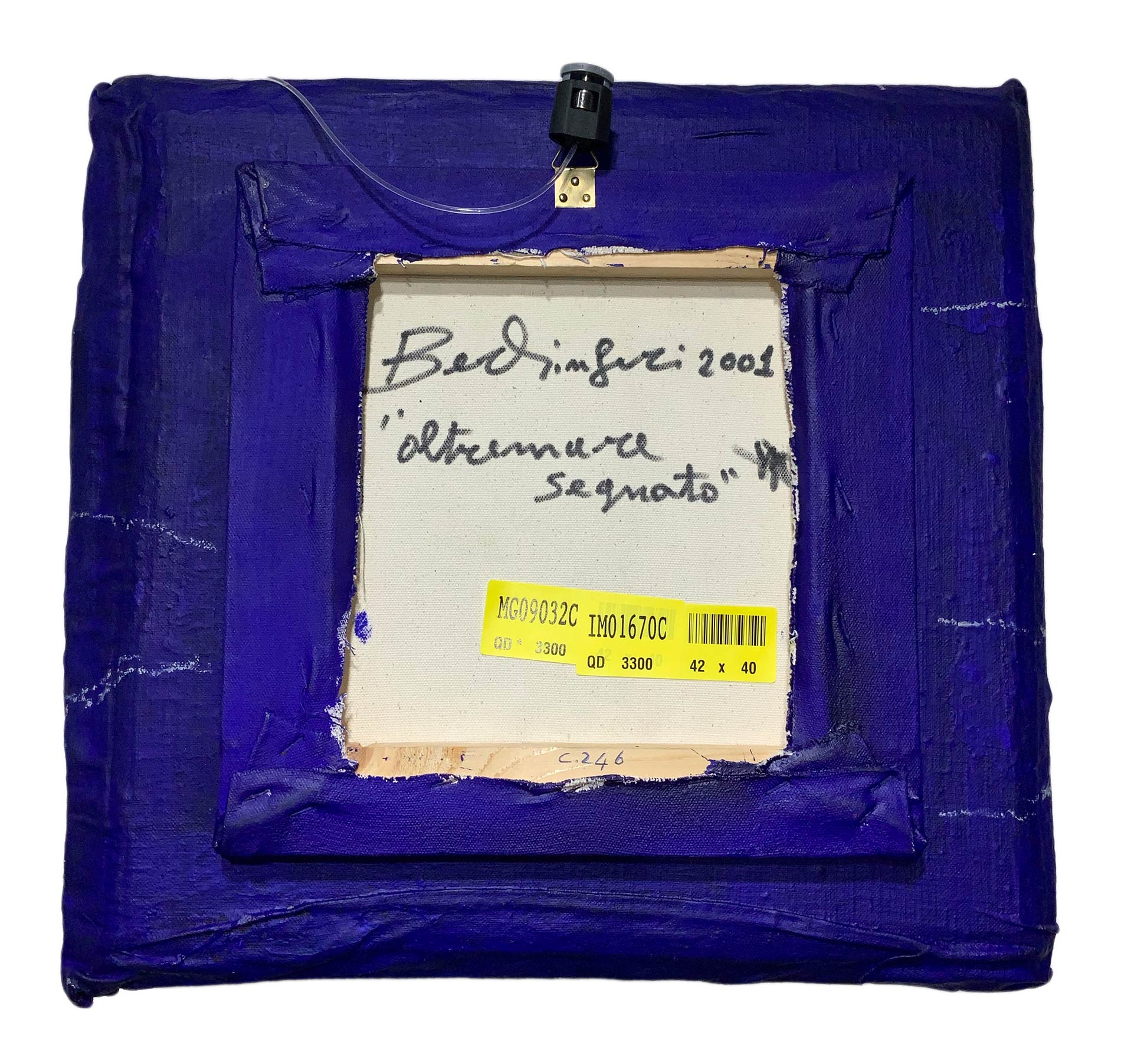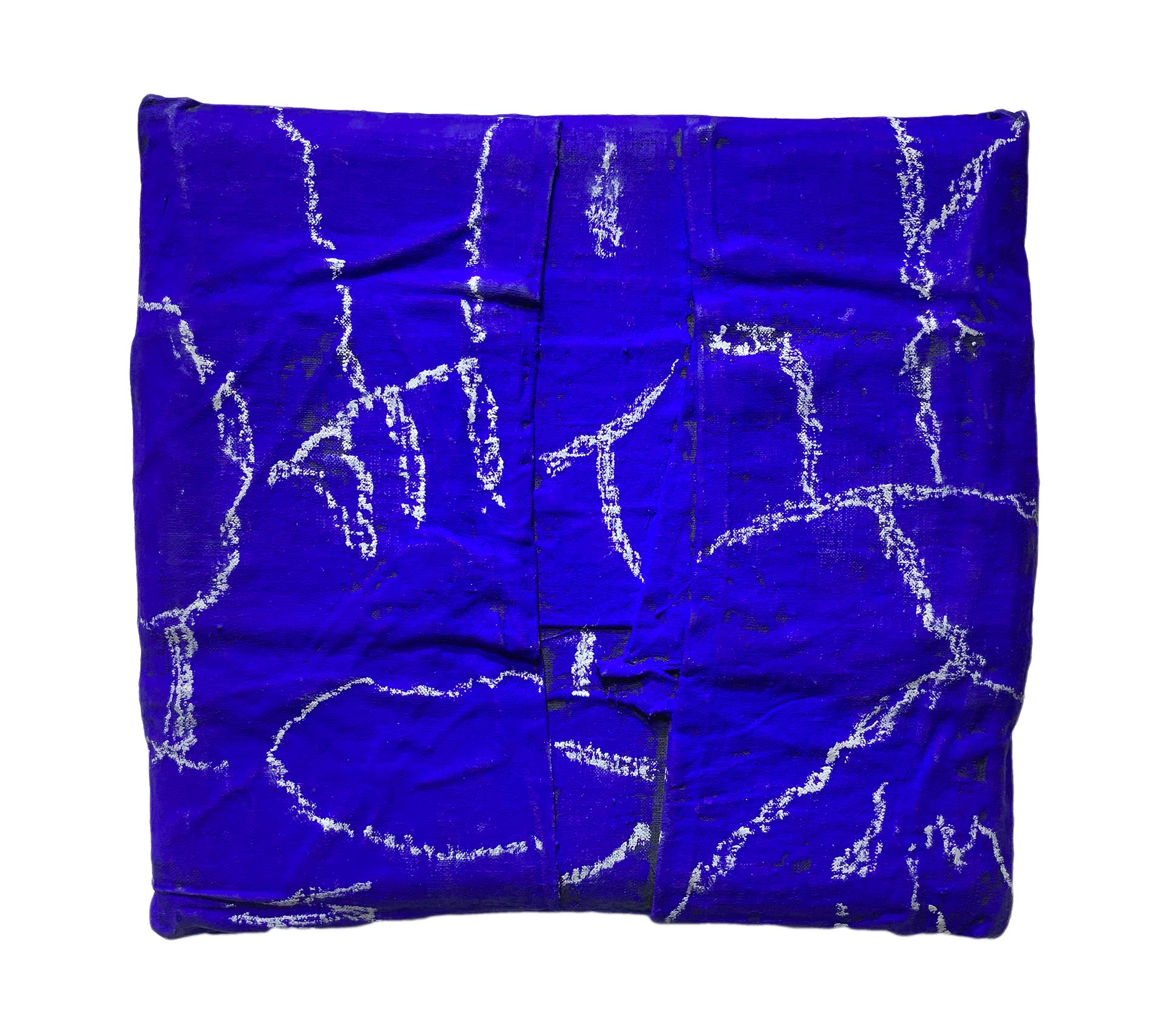 Tela piegata di Cesare Berlingeri (1948 Cittanova, RC). Oltremare segnato. Cm 40x40. Firmato sul retro.