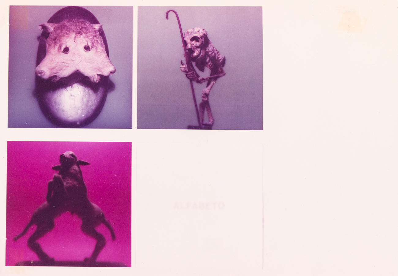 L'opera è un bozzetto fotografico realizzato da Claudio Parmiggiani con fotografie di Luigi Ghirri per l'opera Alfabeto del 1973: installazione originariamente composta da 22 fotografie di cm 50x50 scattate da Luigi Ghirri ed esposte in occasione della Mostra Alfabeto di Claudio Parmiggiani del 1973 presso il Museo di Storia Naturale Lazzaro Spallanzani di Reggio Emilia