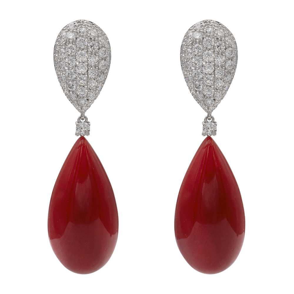 Lotto 13 | Orecchini pendenti in oro bianco 18kt e corallo rosso Sardegnapeso 14,1...