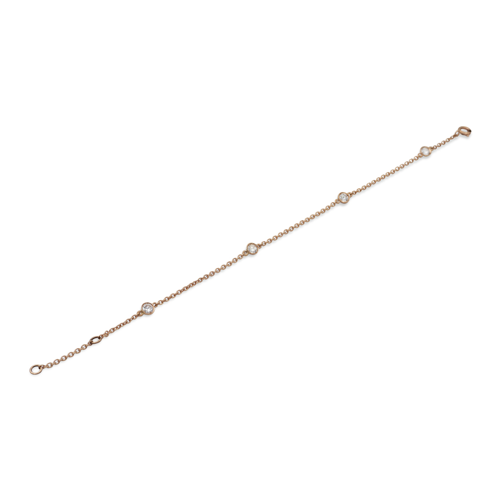 Bracciale in oro rosa 18kt con quattro diamantipeso 1,8 gr.taglio brillante ct 0,48 circa, lunghezza 17 cm.
