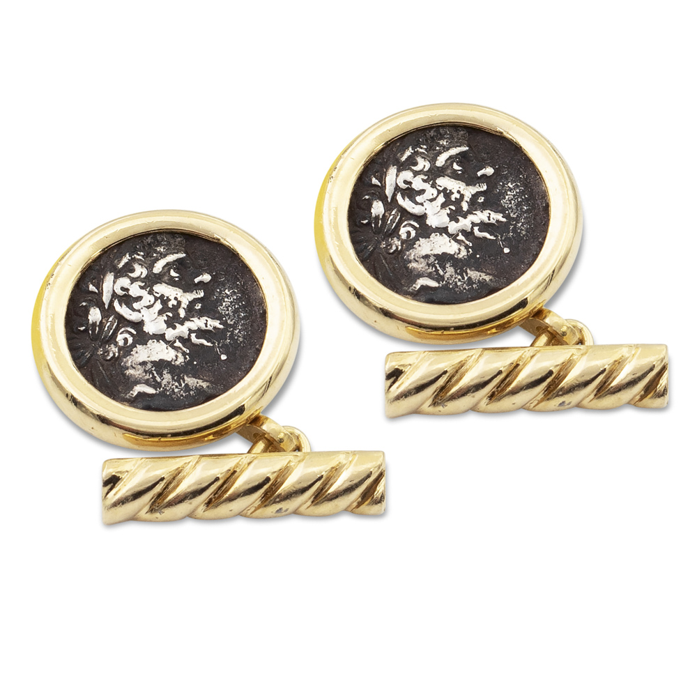 Gemelli di forma circolare in oro giallo 18ktpeso 10 grcentrati da due medaglie raffiguranti imperatore