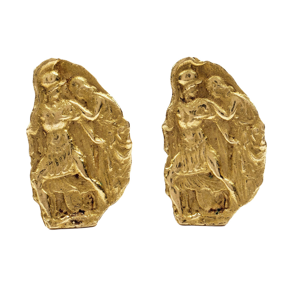 Gemelli in oro giallo 18ktanni 50/60peso 11,1 gr.scolpiti a raffigurare scene tratte dall'antico