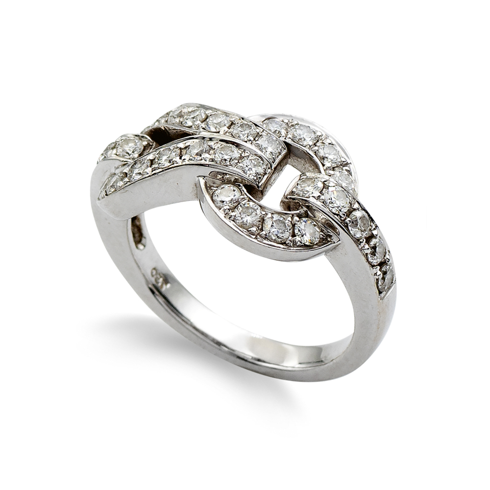 Anello in oro bianco 18kt con diamantipeso 9 gr.taglio brillante ct 1 circa, misura 18