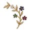 Spilla ramage in oro giallo 18ktpeso 14,3 gr.fiori realizzati con smeraldi, rubini, zaffiri e diamanti taglio a goccia ct 1,30 circa cadauno e diamanti taglio brillante ct 0,70 circa