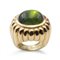 David Webb, anello in oro giallo 18ktanni 70/80peso 34,8 gr.baccellato con incastonata una tormalina verde taglio cabochon, firmato all'interno del gambo, misura 6