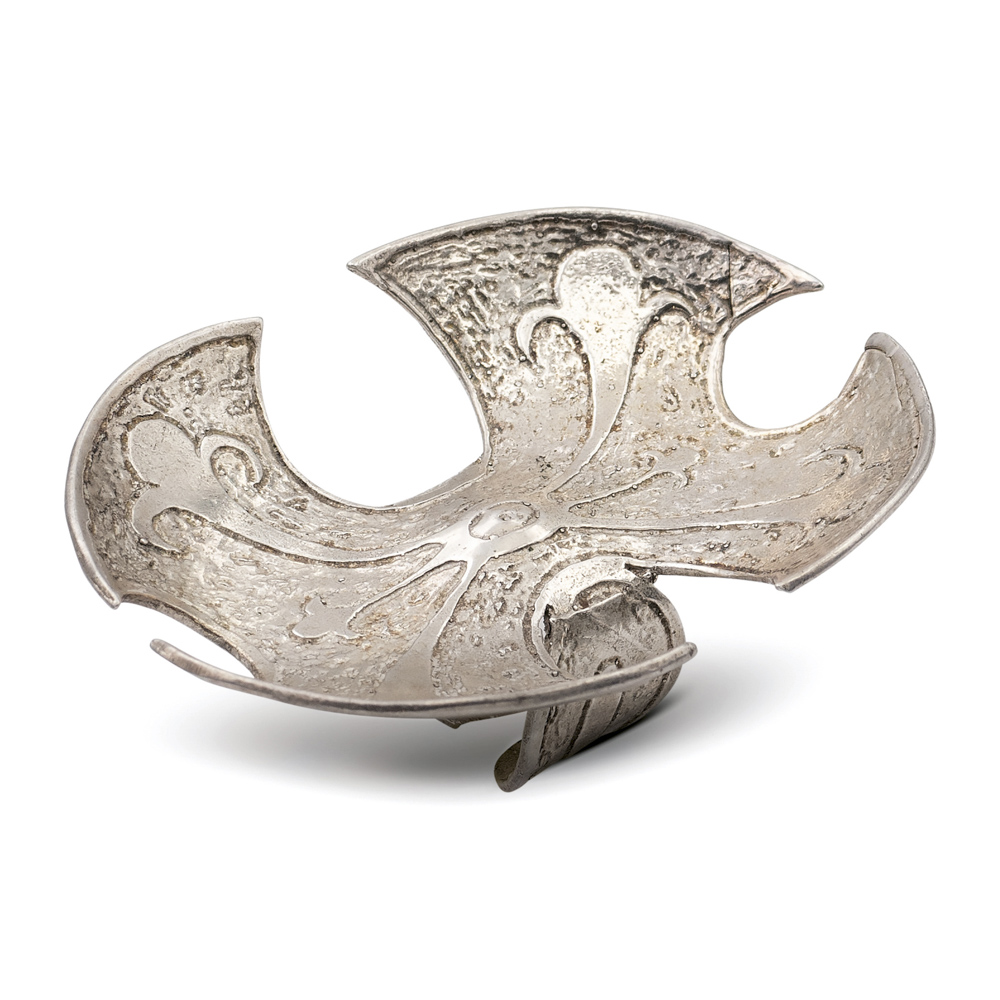Anello scultura in argentoanni 70/80peso 19,5 gr.gambo aperto, misura 14...