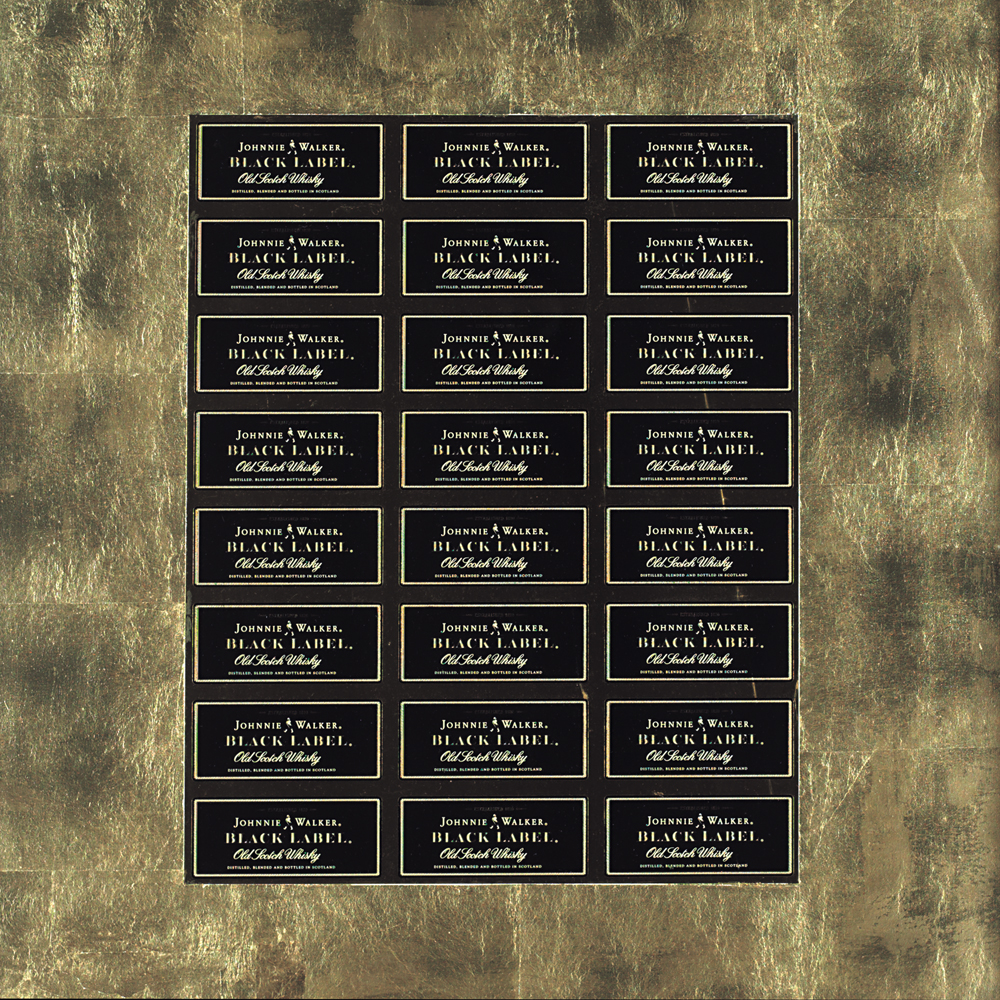 MAX CERTI Martigny (Svizzera) 15/07/1977 Johnnie Walker, 2011 foglia similoro ed etichette originali su tela cm. 60x60, firma, titolo, anno e tecnica al retro, dichiarazione d'autenticità dell'artista su foto.
