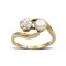 Anello vittoriano in oro giallo 18ktprimi '900peso 4,1 gr.a motivo contrarié con un diamante taglio brillante ct 0,50 circa e una perla 6 mm., misura 14