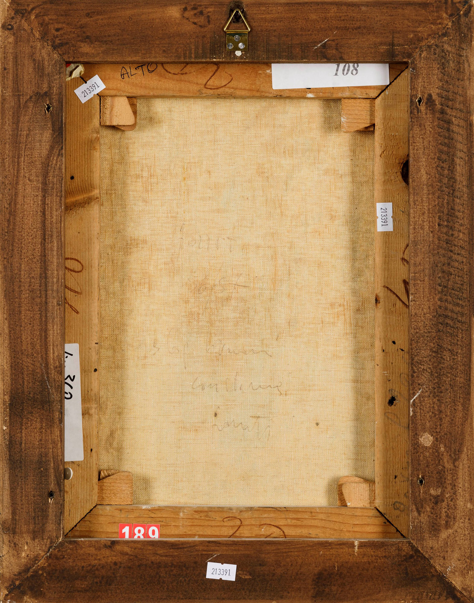 olio su tela, cm 40x30 firmato e datato al retro, dedicato al Sig. Liverani, Provenienza: Asta Pandolfini dedicata alla Collezione Liverani - Galleria La Salita, Roma, 2001 Collezione privata, Milano