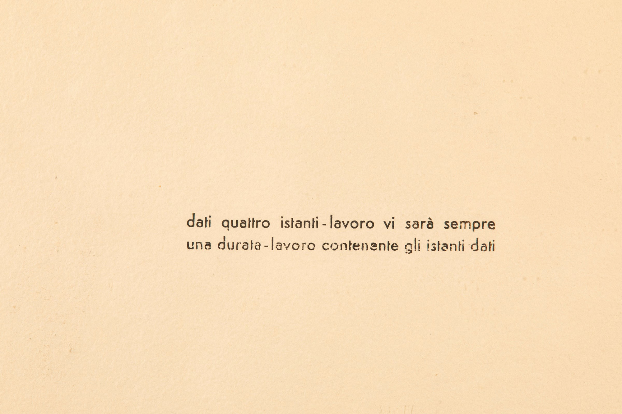 Vincenzo Agnetti (1926-1981), Dati quattro istanti-lavoro vi sarà sempre..., 1973