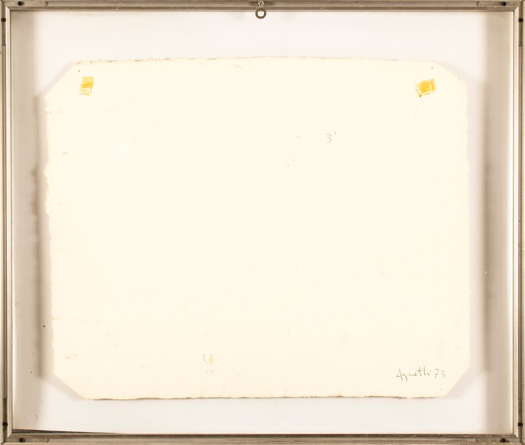 tecnica mista (timbri e tagli) su carta, cm 53x72 firmato e datato al retro Opera registrata presso l’Archivio Vincenzo Agnetti, Milano, in data 11 dicembre 2019, con il n. 0703IL1973061905309, Provenienza: Nuova BreraArte, Milano Collezione privata, Torino