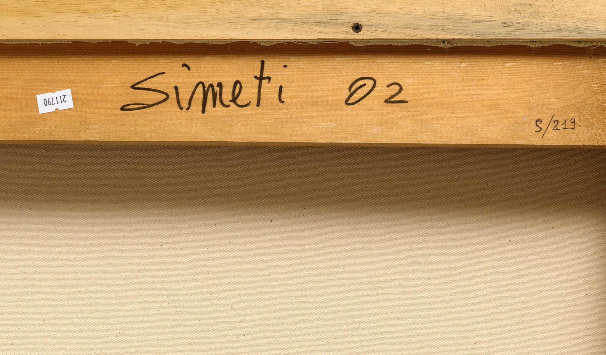 acrilico su tela, cm 100x100 firmato e datato al retro sul telaio Opera registrata presso l’Archivio Turi Simeti, Milano, con il n.2002-G1001, Provenienza: Collezione privata, Milano