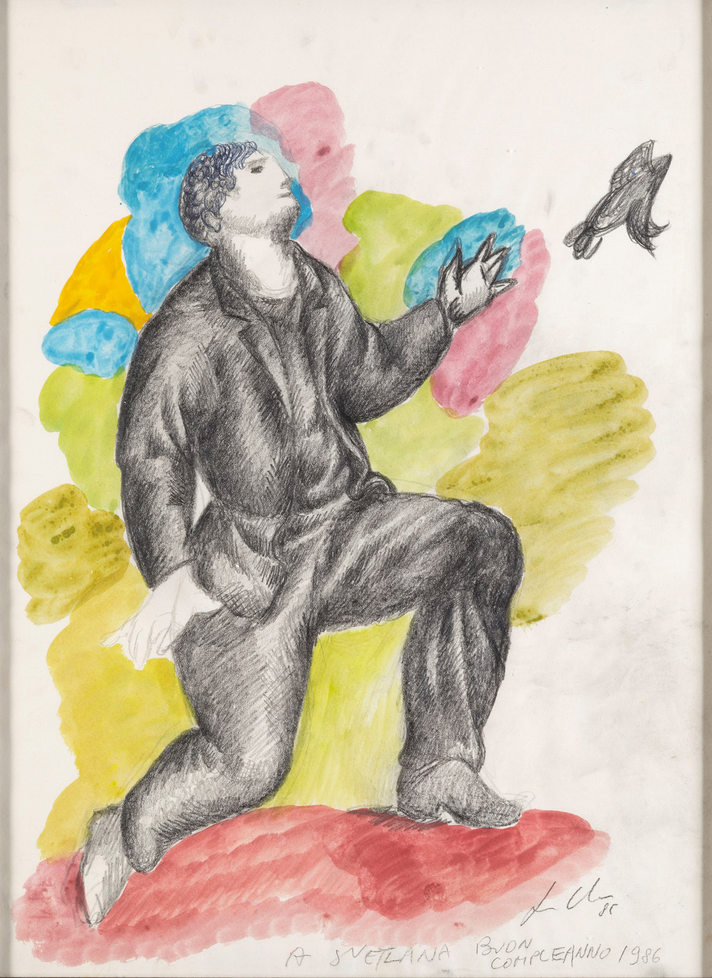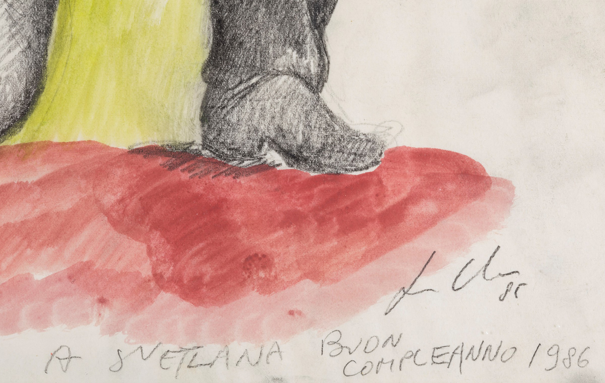 tecnica mista su carta, cm 47x35 firmato, datato e dedicato in basso a destra Autentica su fotografia dell'artista