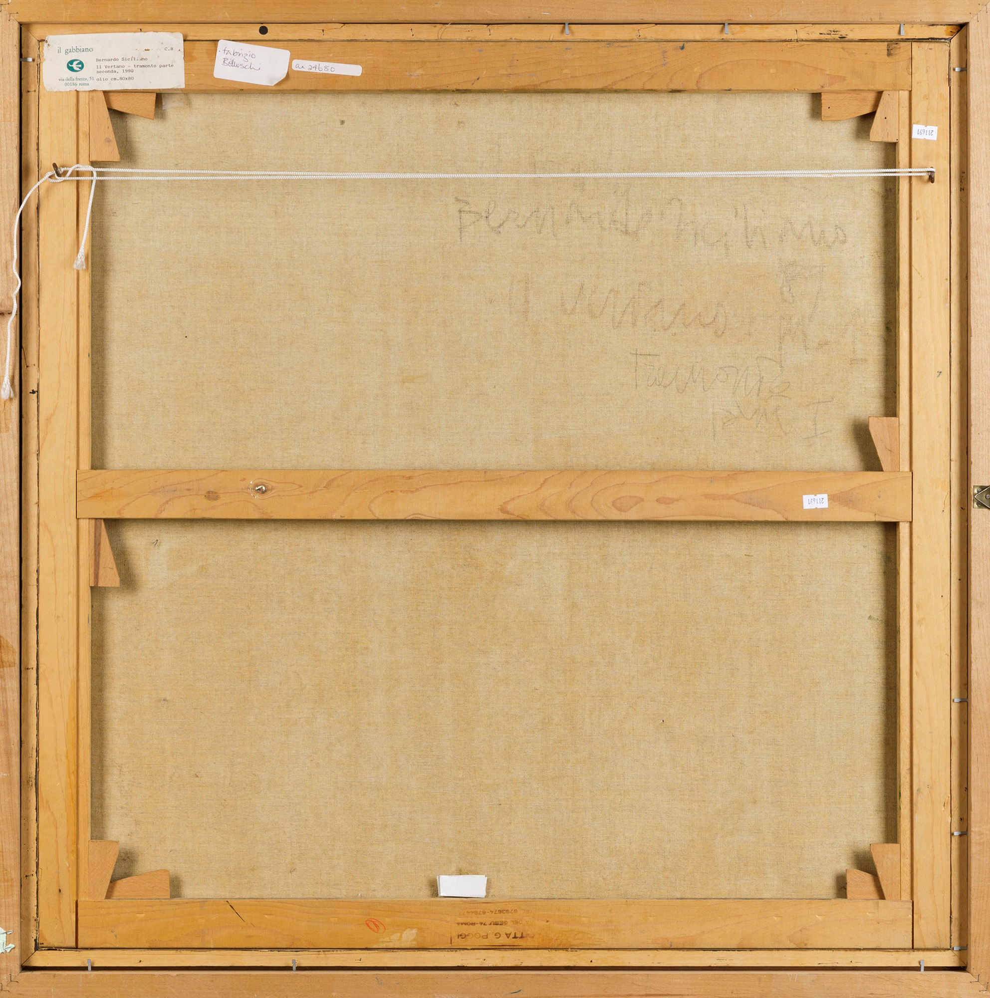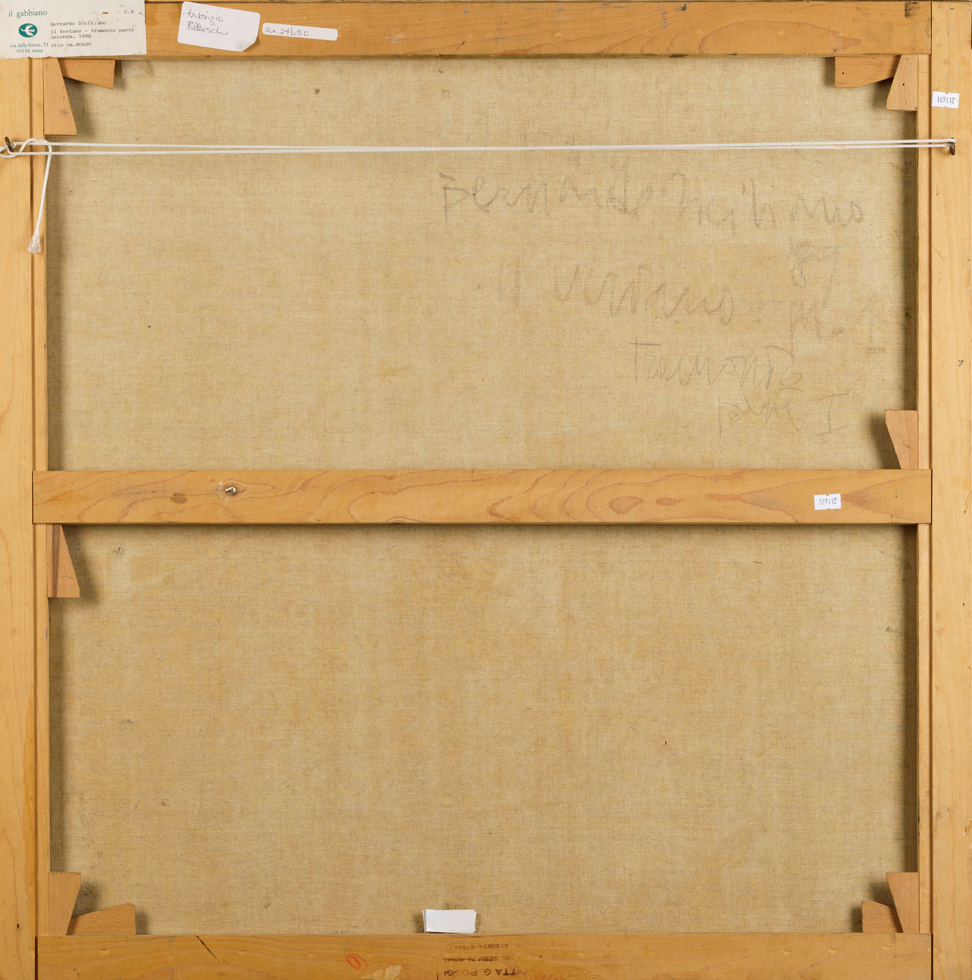 olio su tela, cm 80x80 firmato, intitolato e datato al retro Etichetta al retro della Galleria Il Gabbiano, Roma