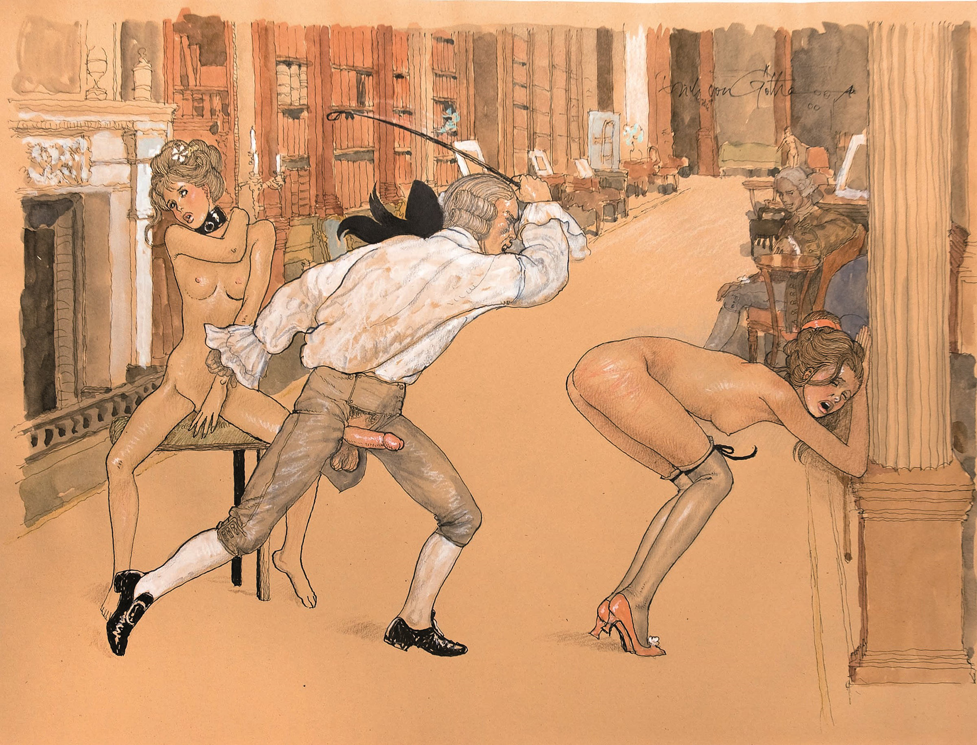 Grande illustrazione originale. Tecnica mista su carta colorata. Cm 56x42. Firmata.