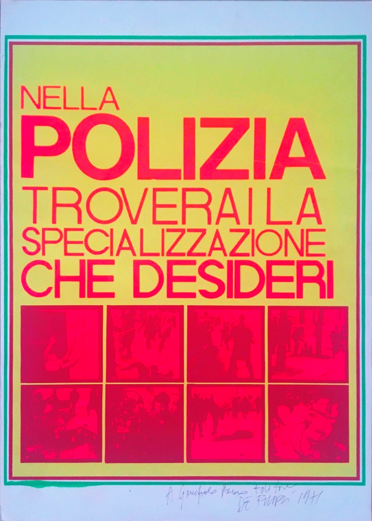 "Untitled". Lithography on paper, sheet 50x70 cm, not numbered. Signed, dedicated and dated 1971 on the bottom right