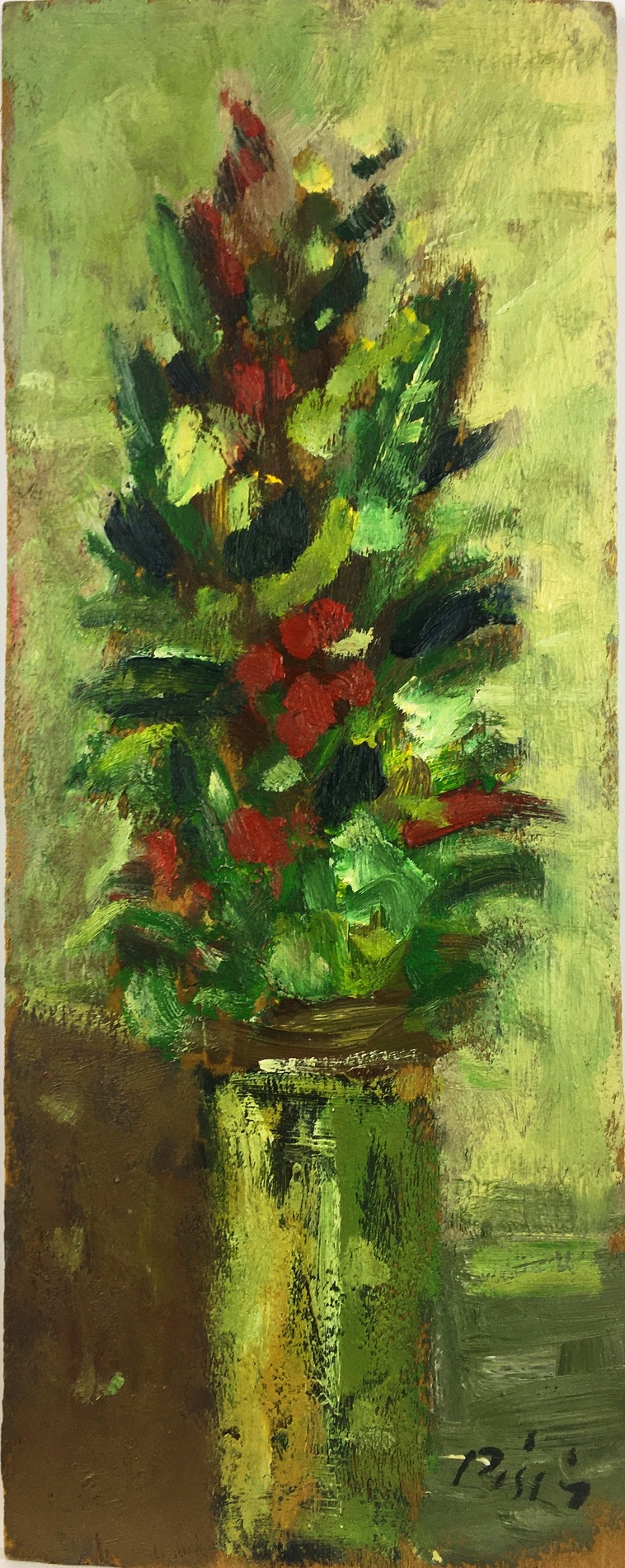 “Senza titolo” olio su tavola cm. 38x17. Sul fronte è firmato in basso a destra "Pisis". Sul retro firma per provenienza non decifrabile. Autentica su foto a cura del professore dott. Giacomo Migone, perito del Tribunale di Genova e facente parte della Federaione nazionale esperti e critici d'arte.