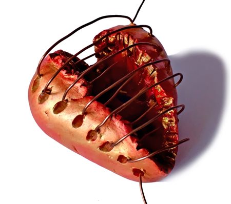 scultura in ceramica, rame ed acrilici, 12,5x7x11,5 cm