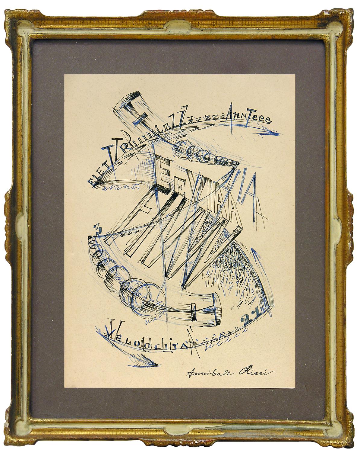 Annibale Ricci AEREOPITTURA inchiostro su carta, cm24x18 firma
