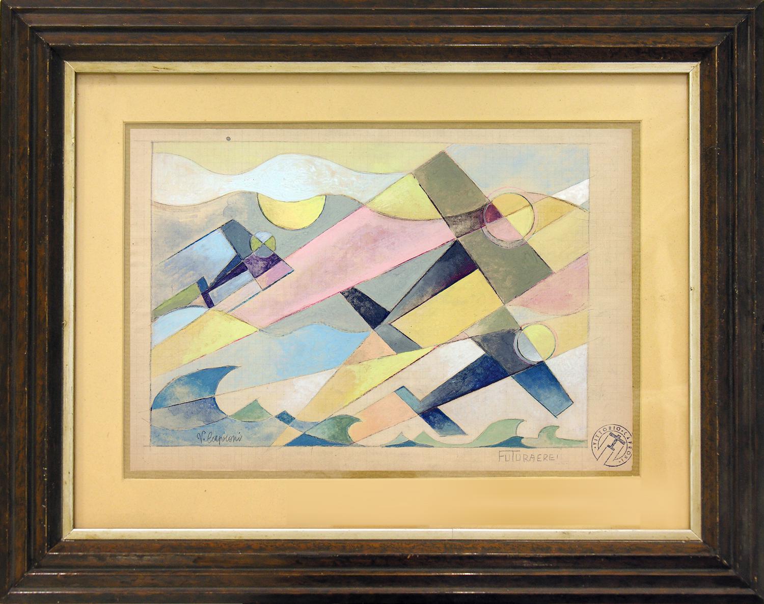 Vittorio Caproni FUTURAEREI tempera su carta quadrettata, cm 20x28 firma,...