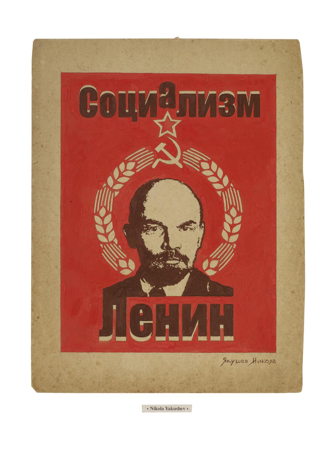 Nikola Yakushev LENIN - PROPAGANDA RUSSA tempera su carta, cm 30,5x23 firma
